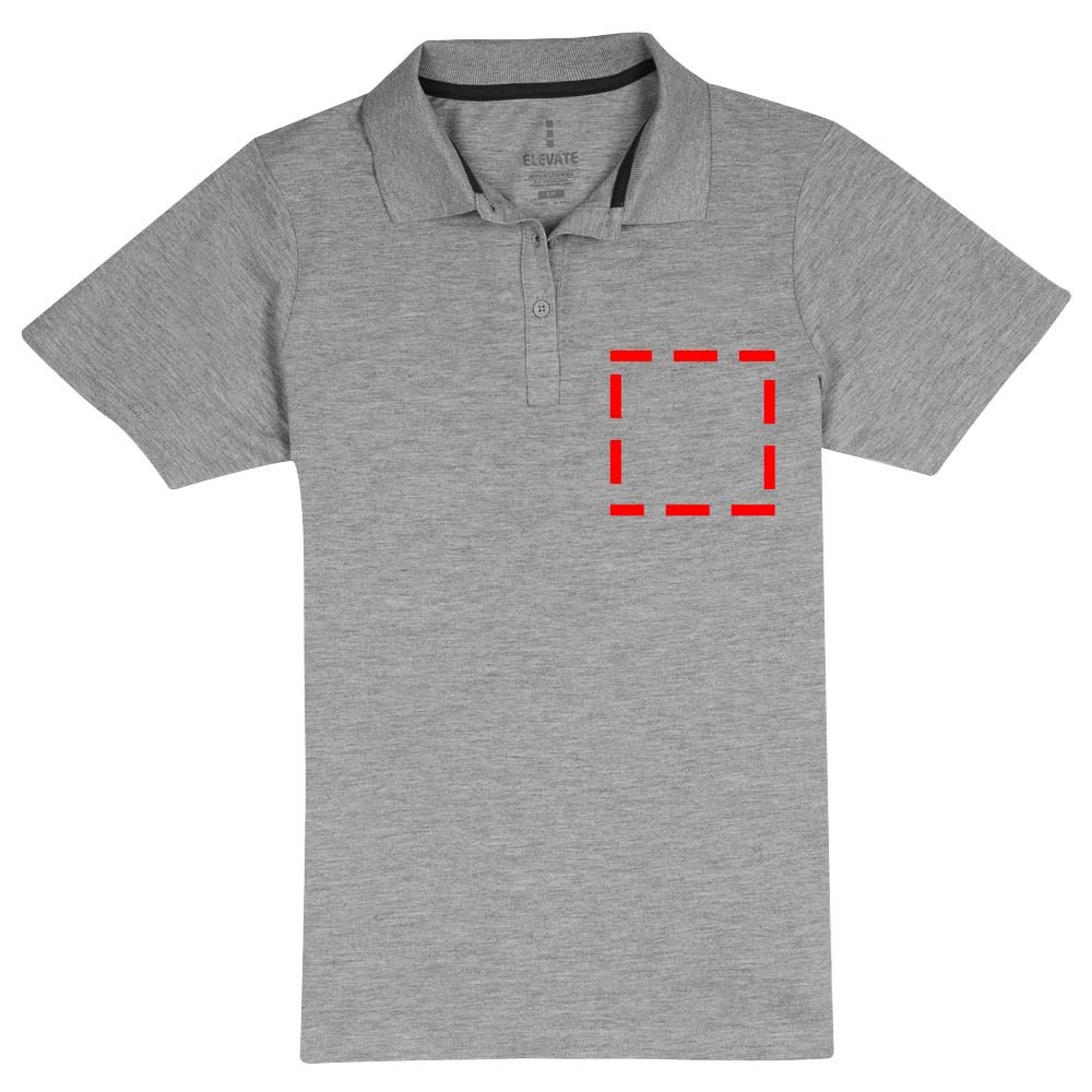 Vlakgebreide kraag. Plat gebreide rib mouw. Knopenlijst met drie knopen. Dubbele stiksels. Nektape in contrasterende kleur. Gegraveerde knopen. Transfer maatlabel voor extra comfort.