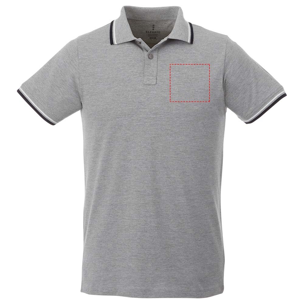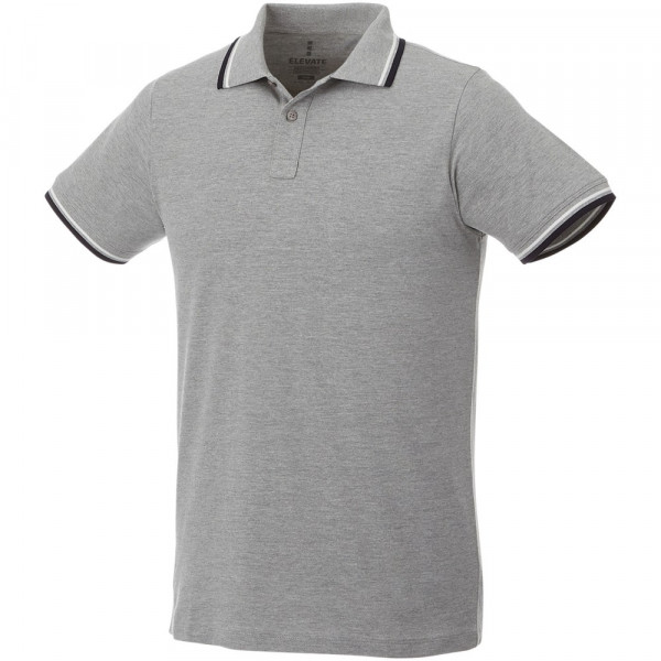 Vlakgebreide kraag. Plat gebreide rib mouw. Contrast gekleurde tipping op de kraag en mouwen. knopenlijst met twee knopen. Gegraveerde knopen. Transfer maatlabel voor extra comfort.