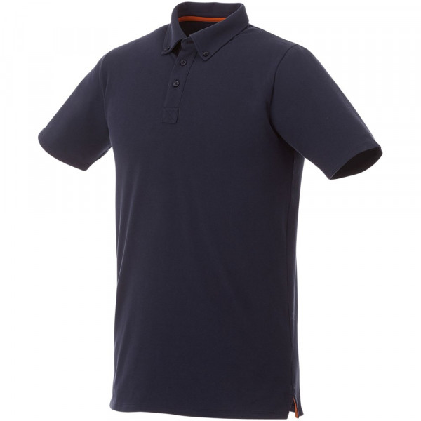 Boord in dezelfde stof. Stretch stof. Knopenlijst met drie knopen. Button-down kraag. Zijsplit. Nektape in contrasterende kleur. Halve maan. Gegraveerde knopen. Transfer maatlabel voor extra comfort.