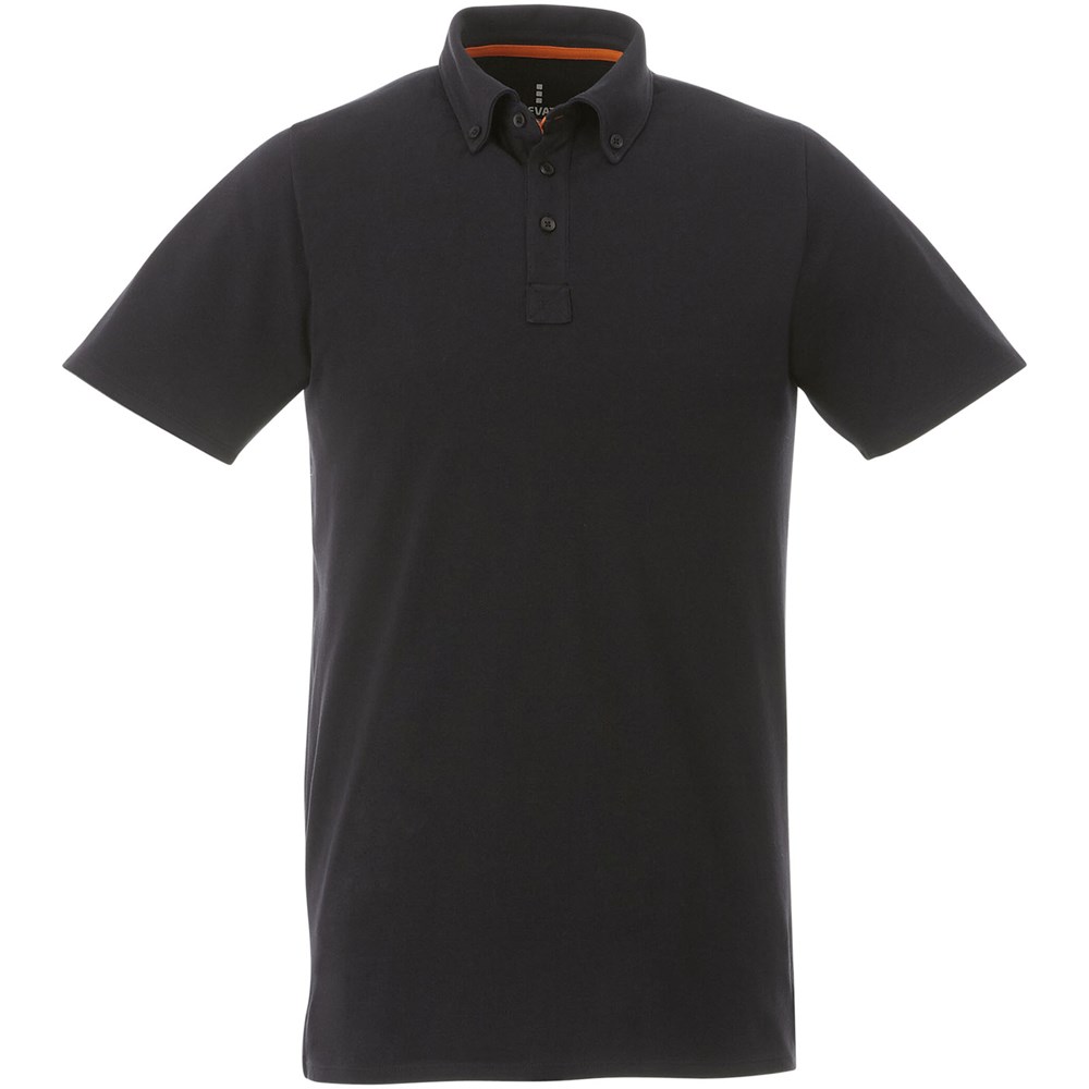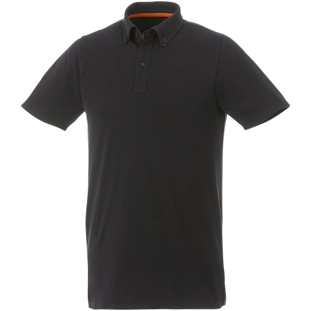 Boord in dezelfde stof. Stretch stof. Knopenlijst met drie knopen. Button-down kraag. Zijsplit. Nektape in contrasterende kleur. Halve maan. Gegraveerde knopen. Transfer maatlabel voor extra comfort.