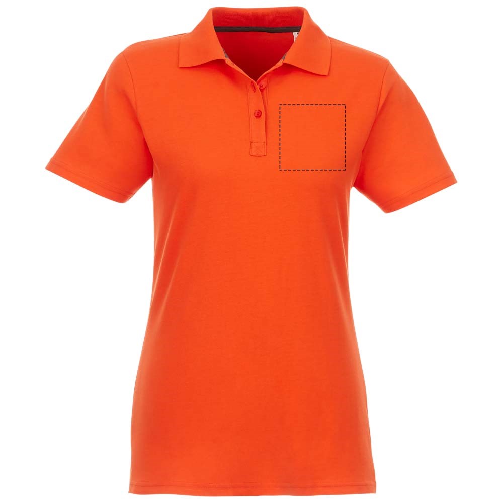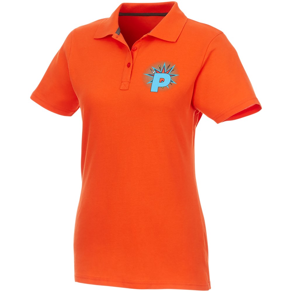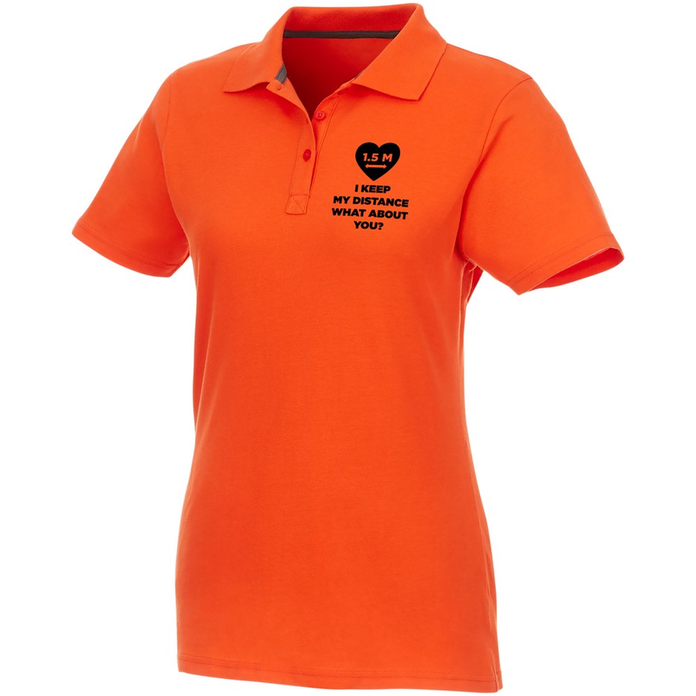 Gepersonaliseerde decoratie opties. Uitneembaar label voor draagcomfort. Vlakgebreide kraag. Knopenlijst met drie knopen. Dubbele stiksels. Gestanste knoop. Nektape in contrasterende kleur.