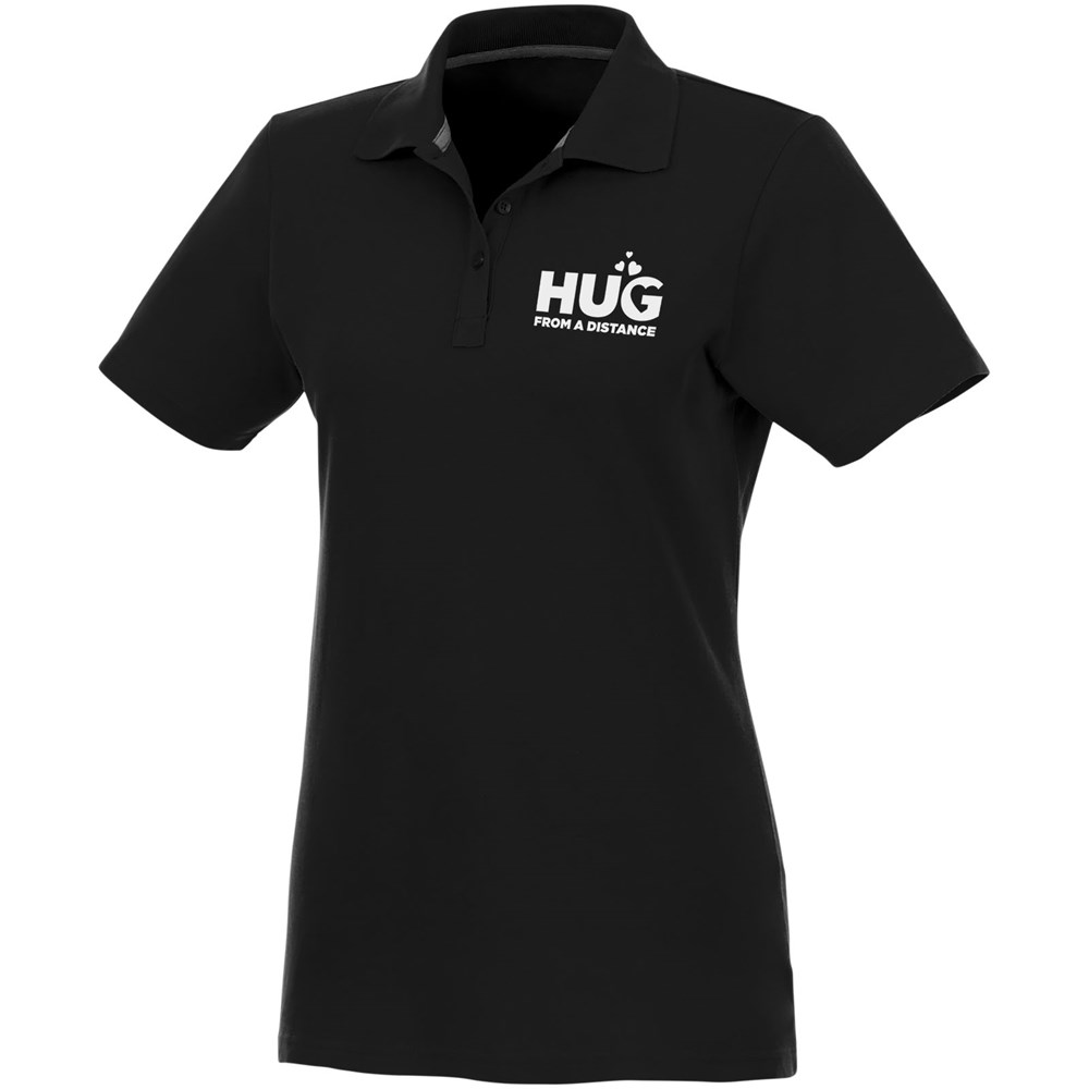 Gepersonaliseerde decoratie opties. Uitneembaar label voor draagcomfort. Vlakgebreide kraag. Knopenlijst met drie knopen. Dubbele stiksels. Gestanste knoop. Nektape in contrasterende kleur.