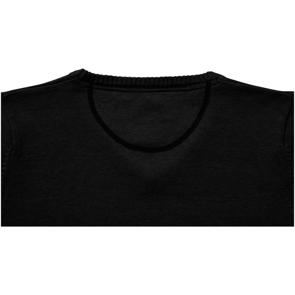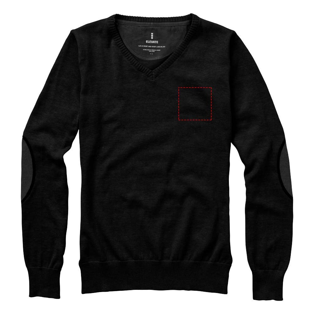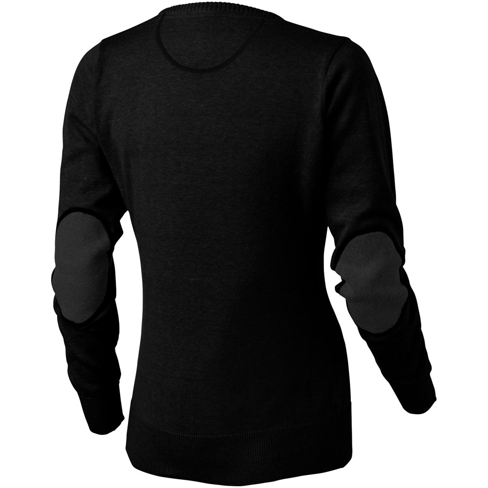 V-hals. Twill elleboogstukken in contrasterende kleur. Toelopende taille voor een meer flatterende pasvorm. Vlakgebreide kraag. Plat gebreide rib mouw. Ribgebreide onderzijde. Contrast gekleurde halve maan. Satijnen nektape. Transfer maatlabel voor extra comfort.