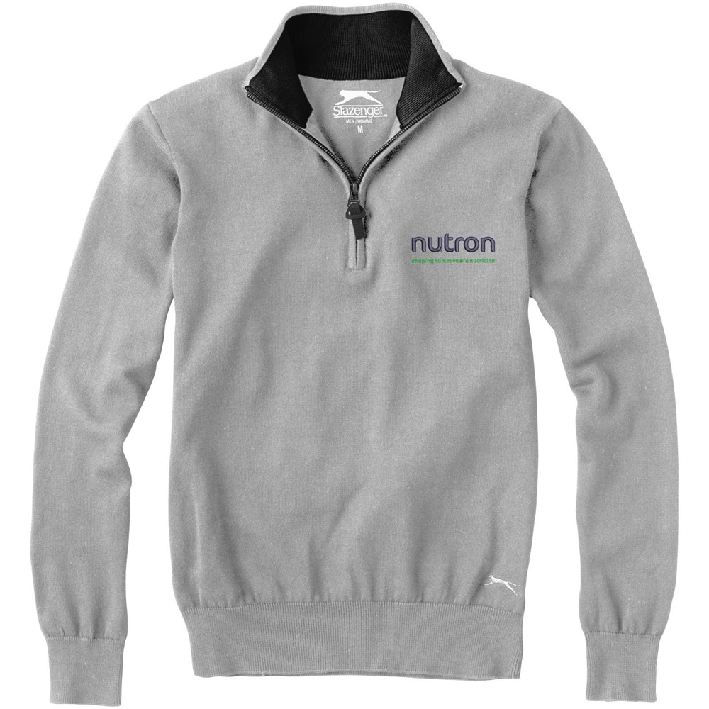 Vormgegeven armsgaten. Leren rits met blinddruk. Metalen rits in kraag. Contrasterende kleur aan binnenzijde kraag. Vlakgebreide kraag. Plat gebreide rib mouw. Ribgebreide onderzijde. Transfer maatlabel voor extra comfort.