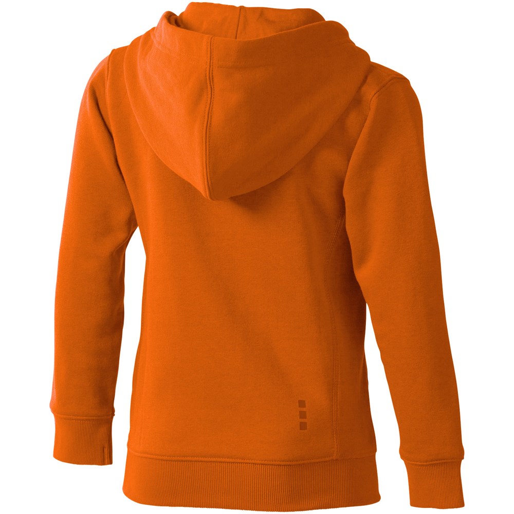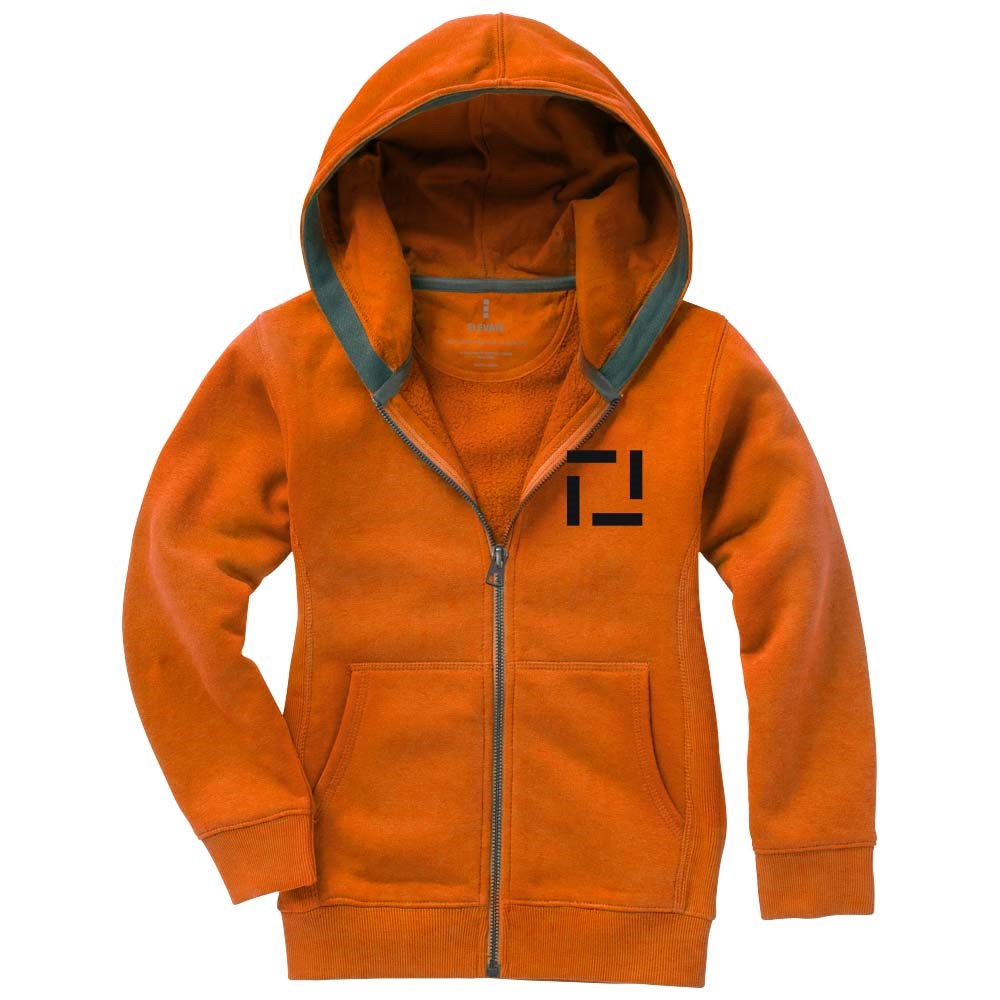 Ribgebreide zijpanelen. Vlakgebreide kraag. Ribgebreide onderzijde. Kangoeroezak. Single jersey voering aan binnenkant capuchon. Halve maan. Satijnen nektape. contrast gekleurde visgraat tape. Gegraveerde zilveren oogjes. Transfer maatlabel voor extra comfort.