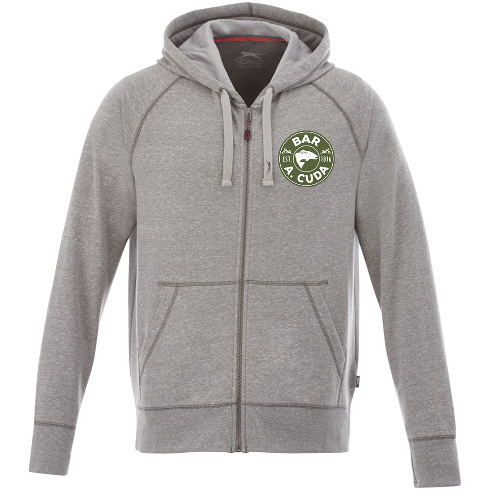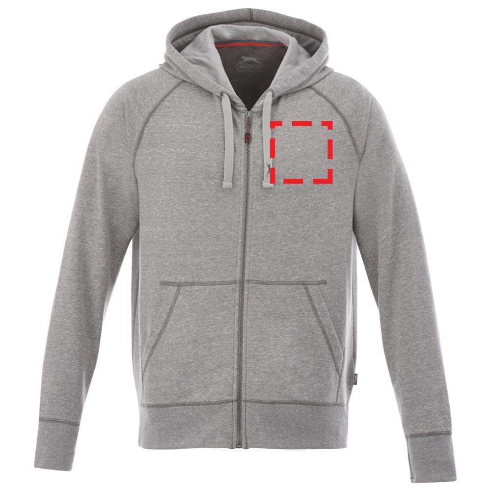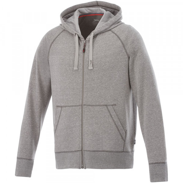 Contrast gekleurd single jersey voering. Interne media zak. Duimsgaten. Trekkoord in capuchon. Kangoeroezak. Contrast gekleurde flatlock stiksels. Ribgebreide onderzijde. Plat gebreide rib mouw. Metalen rits midden voorsluiting. Twee kleuren nektape.