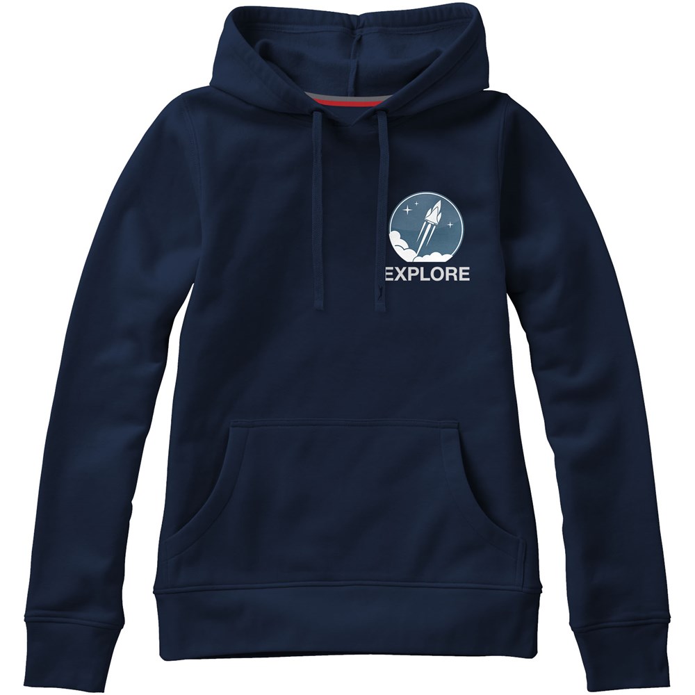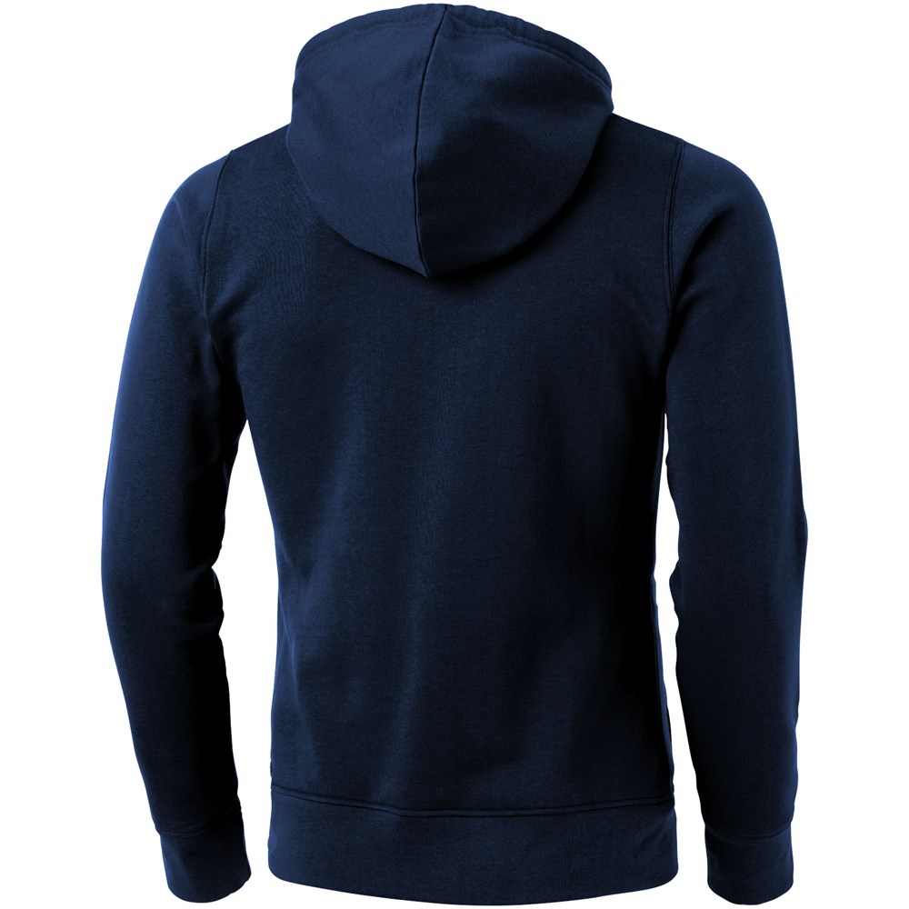 Plat gebreide rib mouw. Ribgebreide onderzijde. Trekkoord in capuchon. Kangoeroezak. Halve maan. Twee kleuren nektape. Gegraveerde zilveren oogjes. Label in zijnaad. Transfer maatlabel voor extra comfort.