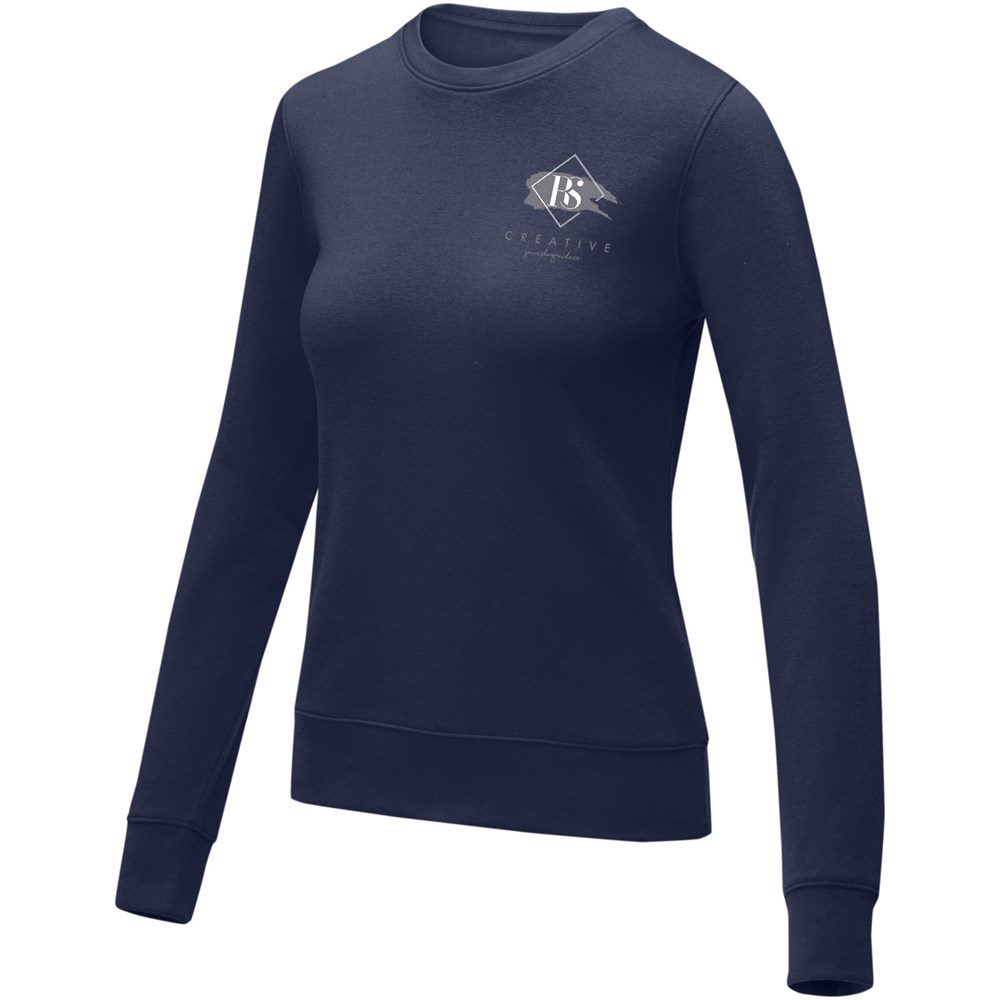Opties voor gepersonaliseerde bewerking. Uitneembaar label voor draagcomfort. Ronde hals. Vlakgebreide- kraag, ribmouwen en geribde onderzijde. Geborsteld aan de binnenkant. Nektape in dezelfde stof. Gevormde naden en flatteus getailleerde pasvorm.