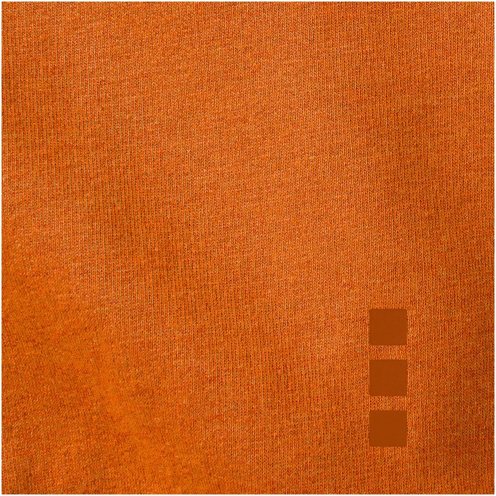 Ribgebreide zijpanelen. Plat gebreide rib mouw. Ribgebreide onderzijde. Trekkoord in capuchon. Kangoeroezak. Halve maan. Single jersey voering aan binnenkant capuchon. Gegraveerde zilveren oogjes. Satijnen nektape. contrast gekleurde visgraat tape.