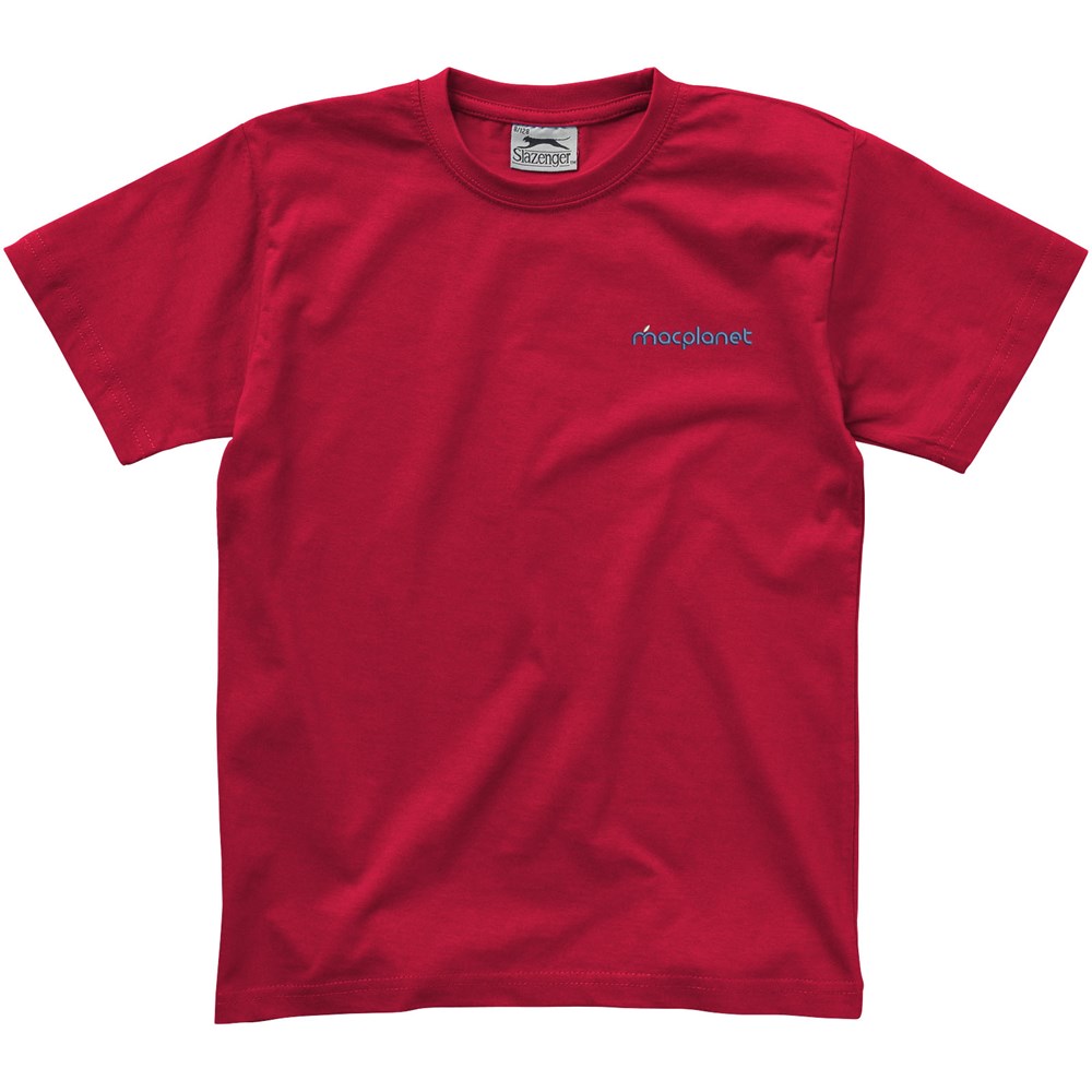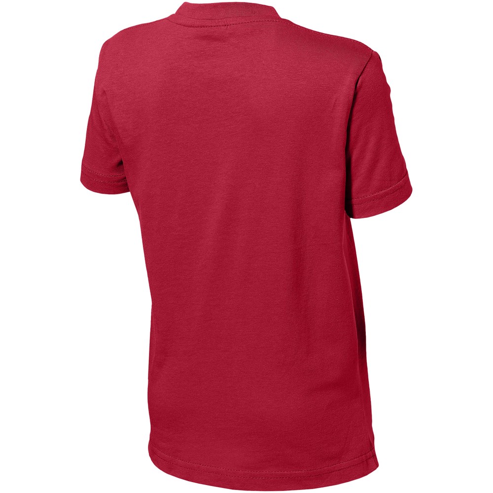 Vlakgebreide kraag. Ronde hals. Zijnaden. Schouder tot schouder tape. Dubbele stiksels. Transfer maatlabel voor extra comfort.