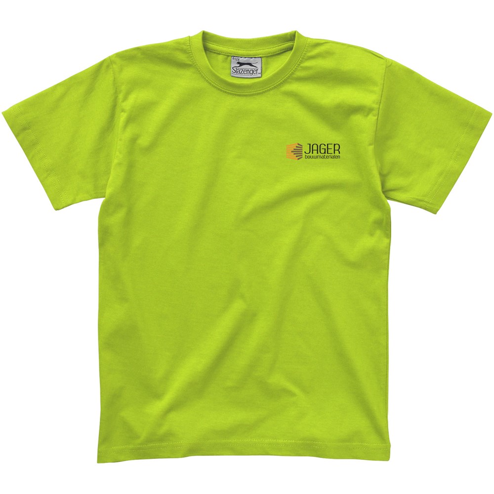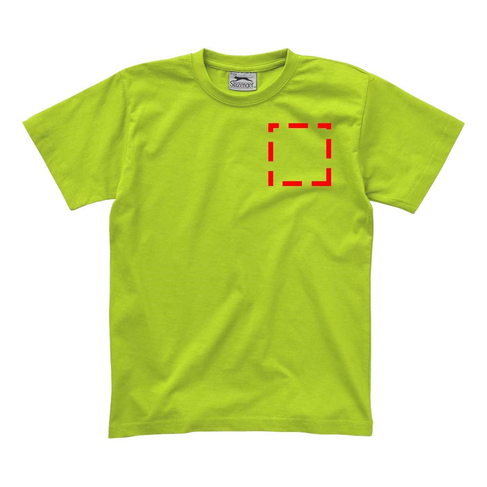 Vlakgebreide kraag. Ronde hals. Zijnaden. Schouder tot schouder tape. Dubbele stiksels. Transfer maatlabel voor extra comfort.