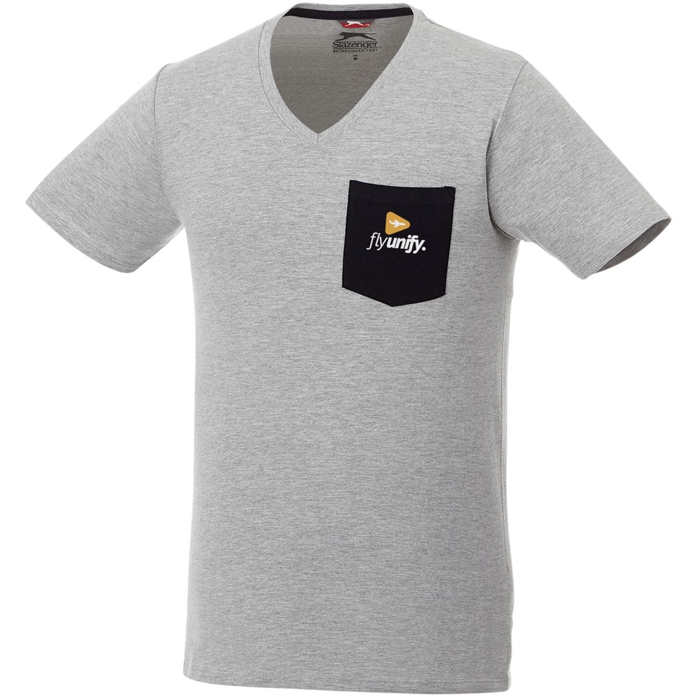 Naadloos cirkelvormig breisel. V-hals. Borstzak. Schouder tot schouder tape. Dubbele stiksels. Ophanglus in contrastkleur. Transfer maatlabel voor extra comfort.