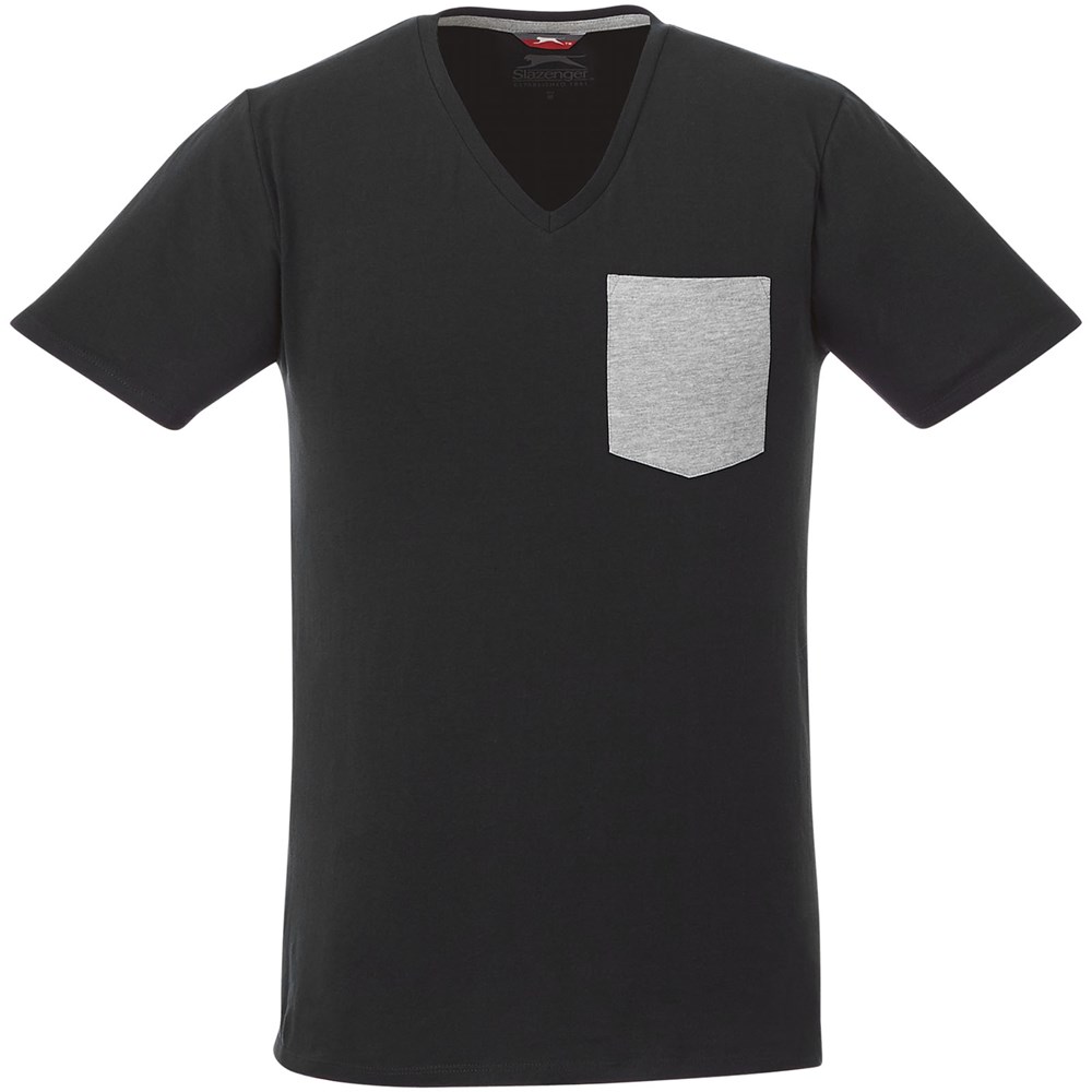 Naadloos cirkelvormig breisel. V-hals. Borstzak. Schouder tot schouder tape. Dubbele stiksels. Ophanglus in contrastkleur. Transfer maatlabel voor extra comfort.