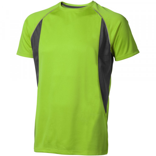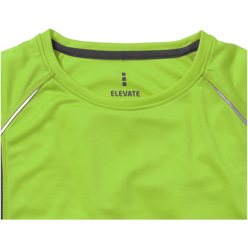 Boord in dezelfde stof. Ronde hals. Zijpanelen in mesh stof. Reflecterende details. Raglan mouwen. Transfer maatlabel voor extra comfort. Smallere details in flatlock steken. Satijnen nektape.