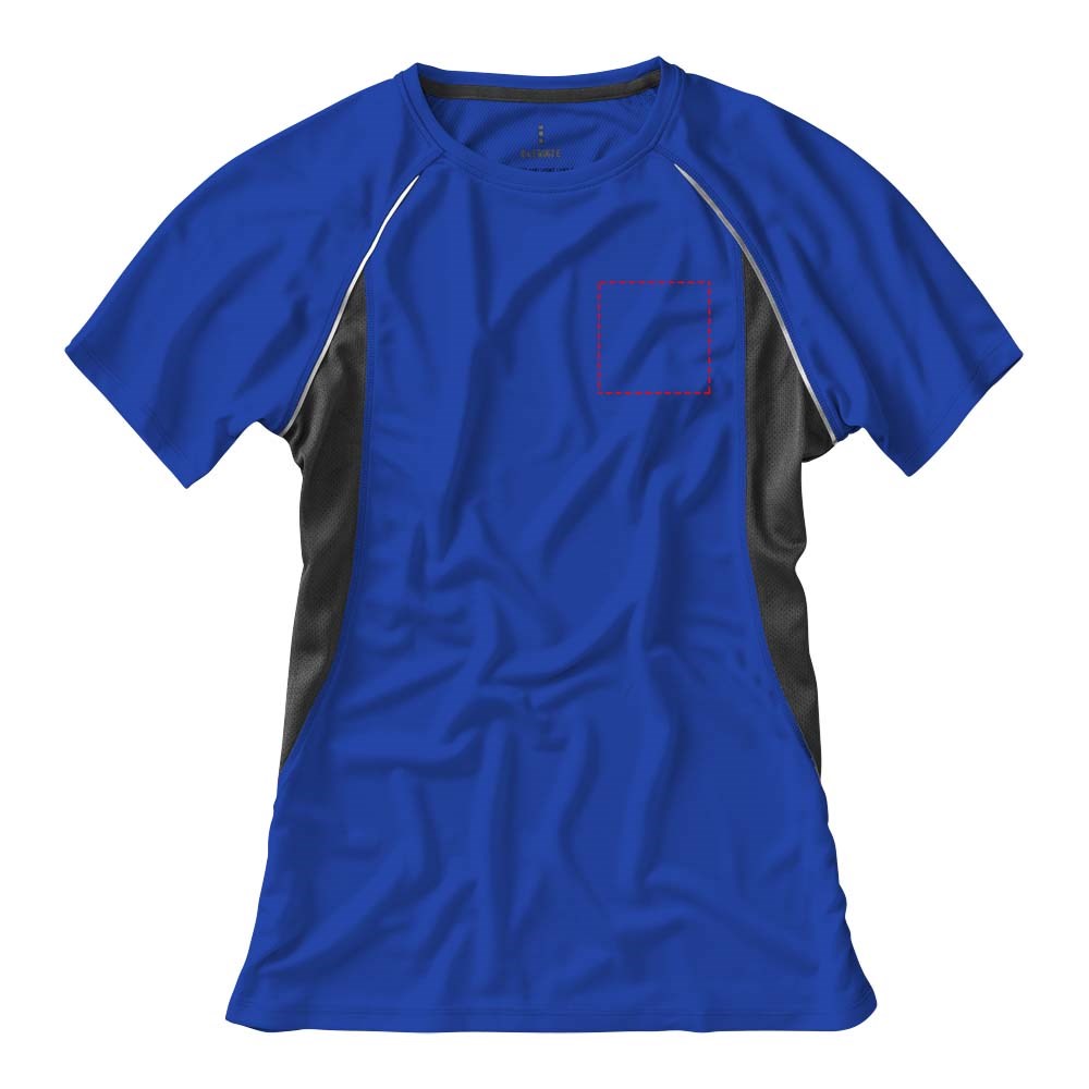 Boord in dezelfde stof. Ronde hals. Zijpanelen in mesh stof. Reflecterende details. Raglan mouwen. Transfer maatlabel voor extra comfort. Smallere details in flatlock steken. Satijnen nektape.