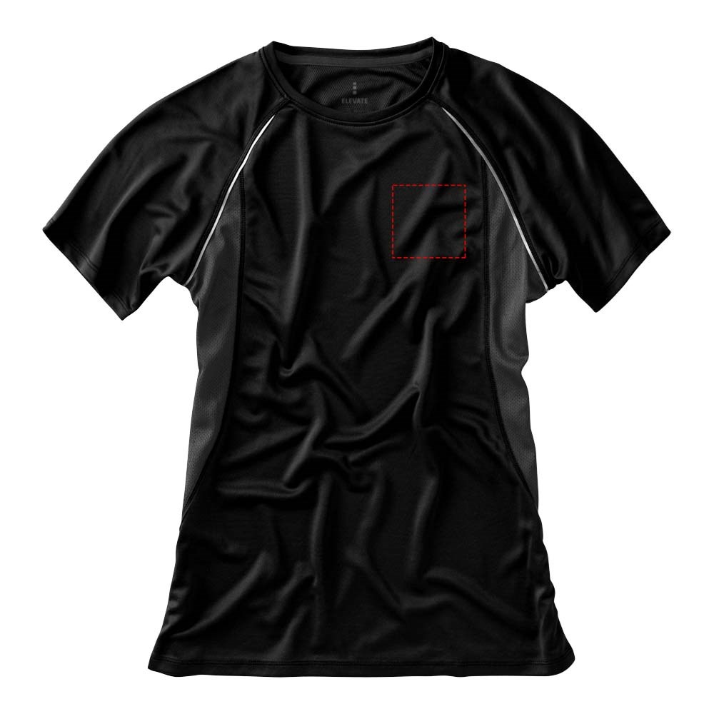 Boord in dezelfde stof. Ronde hals. Zijpanelen in mesh stof. Reflecterende details. Raglan mouwen. Transfer maatlabel voor extra comfort. Smallere details in flatlock steken. Satijnen nektape.