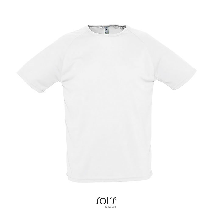 SOL'S SPORTY Heren t-shirt 140g/m². Het ademende materiaal en de snit met raglanmouwen en flatlock-stiksels maken dit product ideaal voor al je sportactiviteiten. Het is verkrijgbaar in een breed scala aan maten en kleuren. Ook in neontinten. 100% polyester met een ademend effect. Verstevigde kraag. Raglan mouwen. Langere rug.