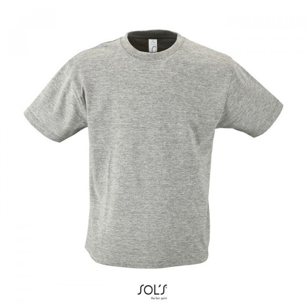 SOL'S REGENT Kinder t-shirt 150g/m². 100% halfgekamd katoen. Verstevigingsband in de nek. Geribde halsboord met elastaan. Met zijnaad (2-4 jaar) of rondgebreid. (vanaf 6 jaar).