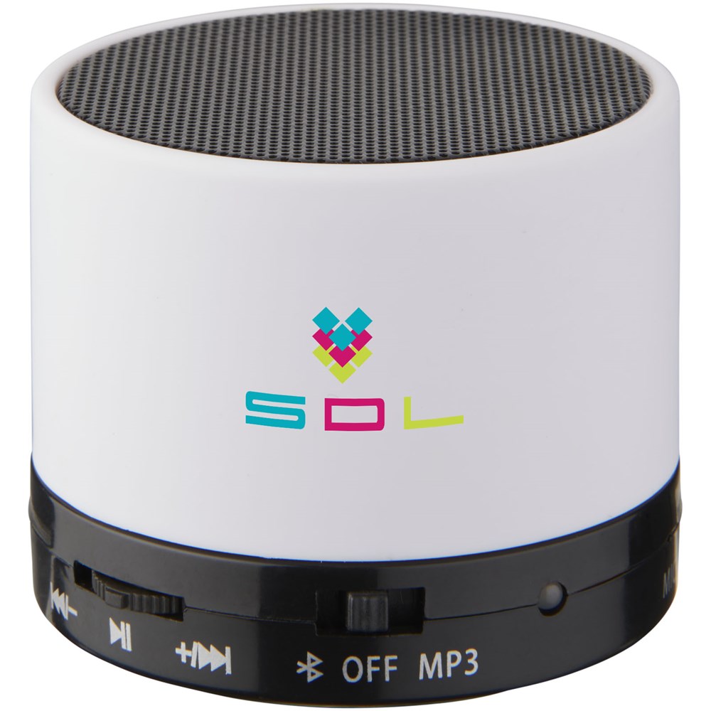 Rubberen cilinderspeaker. Geniet overal van muziek en films door uw Bluetooth® compatibele apparaat zoals iPhone, iPad of Android OS apparaten te koppelen aan deze draagbare Bluetooth® speaker (met bereik van 10 m). Dankzij de ingebouwde microfoon kunt u met de speaker onderweg conferentiegesprekken voeren via uw smartphone of video chatprogramma's zoals Skype. Wordt geleverd met een mooie rubberen afwerking. Inclusief USB voeding.