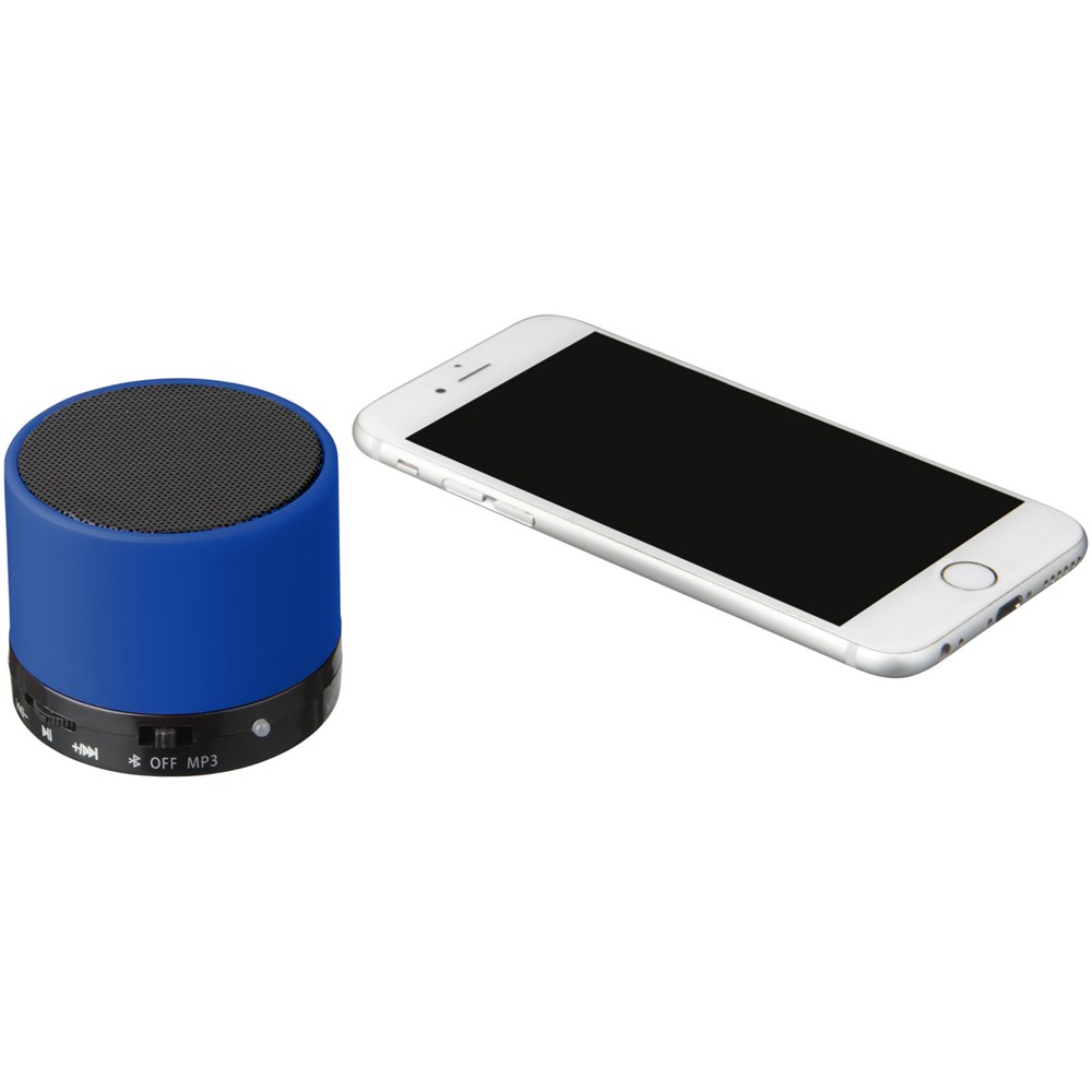 Rubberen cilinderspeaker. Geniet overal van muziek en films door uw Bluetooth® compatibele apparaat zoals iPhone, iPad of Android OS apparaten te koppelen aan deze draagbare Bluetooth® speaker (met bereik van 10 m). Dankzij de ingebouwde microfoon kunt u met de speaker onderweg conferentiegesprekken voeren via uw smartphone of video chatprogramma's zoals Skype. Wordt geleverd met een mooie rubberen afwerking. Inclusief USB voeding.