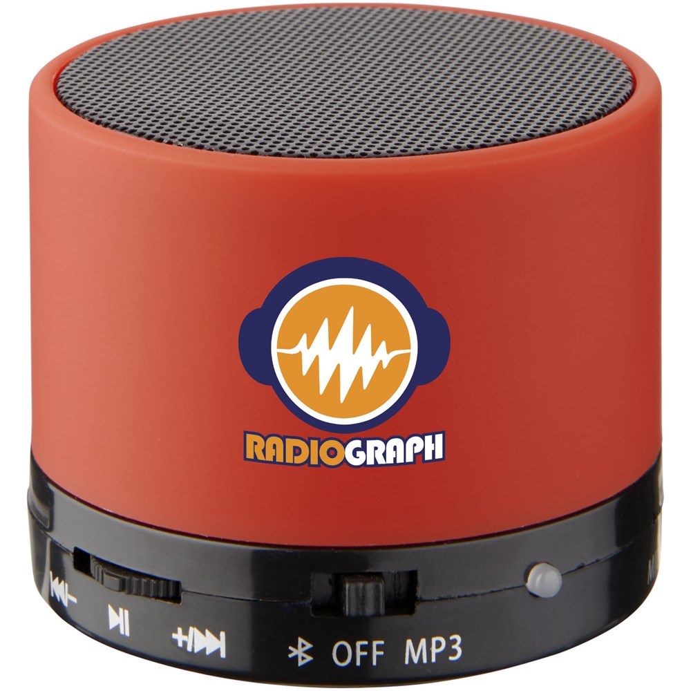 Rubberen cilinderspeaker. Geniet overal van muziek en films door uw Bluetooth® compatibele apparaat zoals iPhone, iPad of Android OS apparaten te koppelen aan deze draagbare Bluetooth® speaker (met bereik van 10 m). Dankzij de ingebouwde microfoon kunt u met de speaker onderweg conferentiegesprekken voeren via uw smartphone of video chatprogramma's zoals Skype. Wordt geleverd met een mooie rubberen afwerking. Inclusief USB voeding.