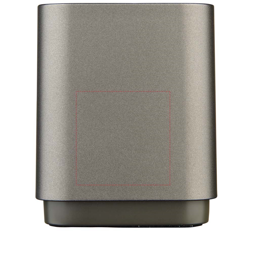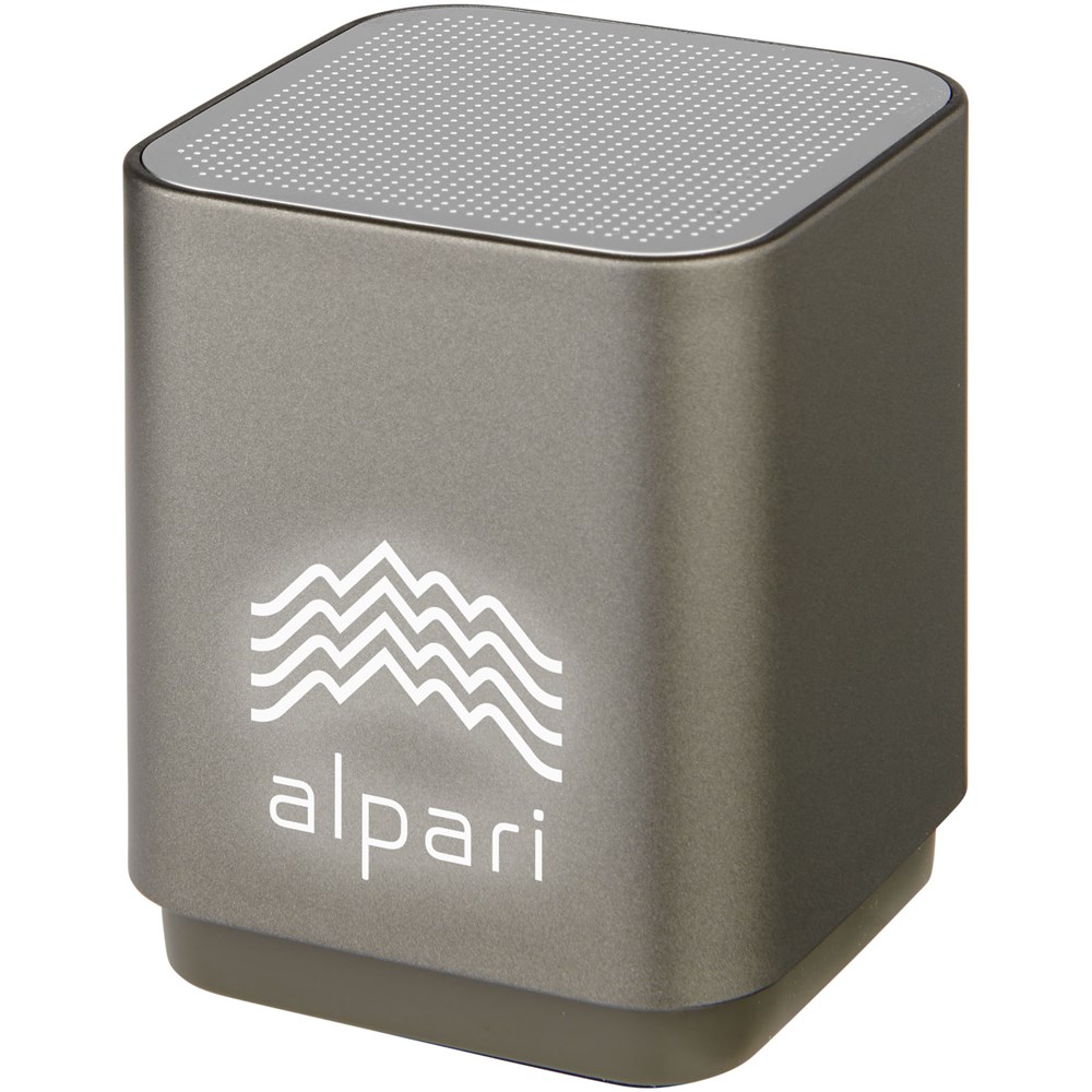 De Beam light-up Bluetooth®-speaker heeft een interne oplaadbare batterij die maximaal 1,5 uur non-stop muziek levert. Onder het voorste gedeelte van de speakerbehuizing bevindt zich een LED-paneel. Wanneer het voorste gedeelte is gedecoreerd met een laser, licht je logo op! Een micro USB-oplaadkabel is inbegrepen. Het Bluetooth®-bereik is 10 meter. De oplaadtijd is 2 uur.