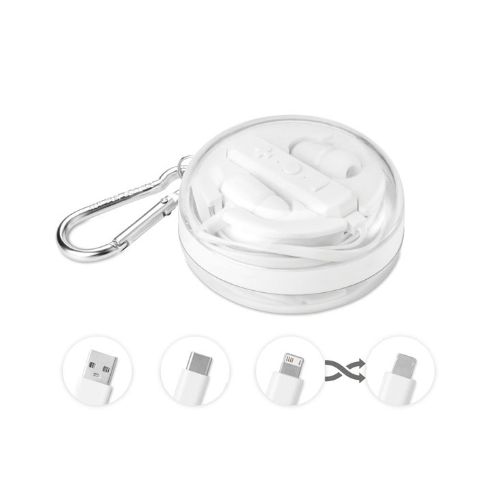 5.0 ABS draadloze oordopjes met ingebouwde microfoon met oplaadbare 70 mAh batterij. Eenvoudig verbinding te maken met apparaten. Wordt geleverd in een doosje met karabijnhaak en inclusief een oplaadkabel met USB A naar Micro B (2-in-1) en Type-C.