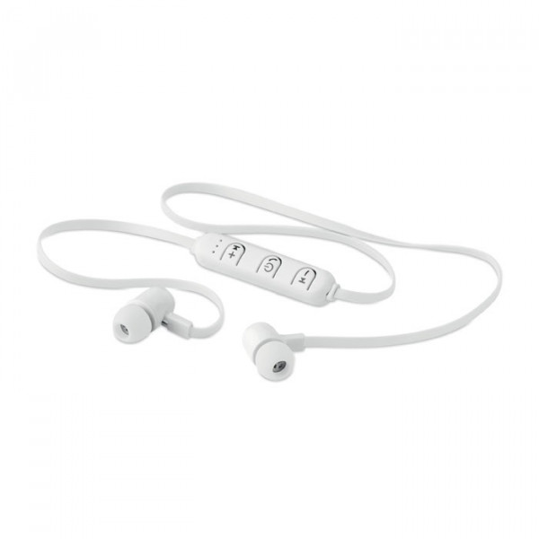 4.2 draadloze oortelefoon met microfoon functie. 55 mAh oplaadbare Li-On batterij. Verpakt in een kunststof doosje.