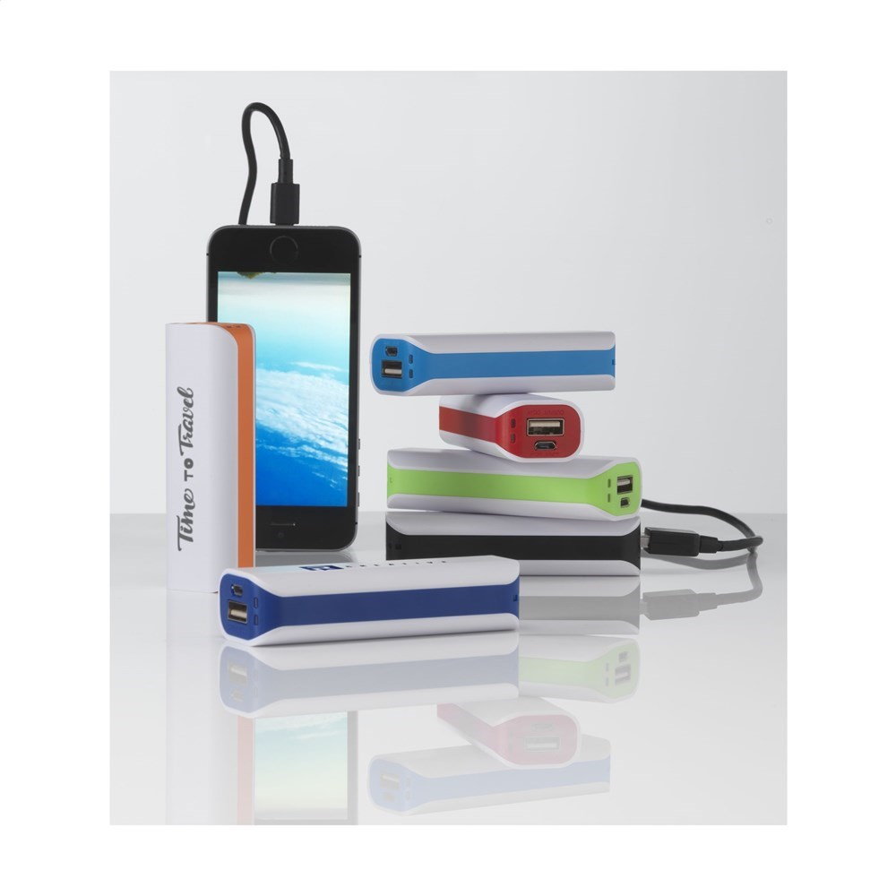 ABS powerbank met ingebouwde lithium batterij (2200 mAh/3.7V). Input: 5V-800mA. Output: 5V-1A. De powerbank kan via USB, met bijgeleverde USB-kabel, worden opgeladen. Geschikt voor de meest gangbare mobiele apparaten. Incl. gebruiksaanwijzing.