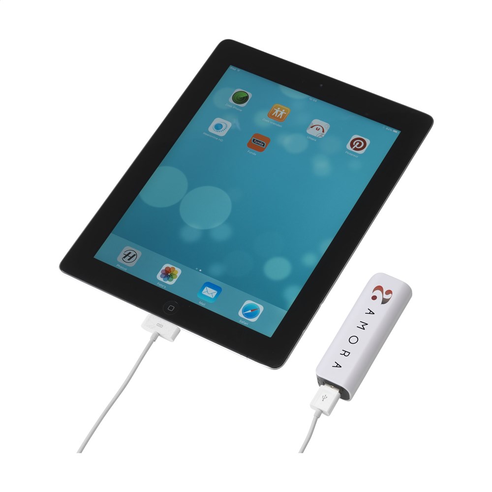 ABS powerbank met ingebouwde lithium batterij (2200 mAh/3.7V). Input: 5V-800mA. Output: 5V-1A. De powerbank kan via USB, met bijgeleverde USB-kabel, worden opgeladen. Geschikt voor de meest gangbare mobiele apparaten. Incl. gebruiksaanwijzing.