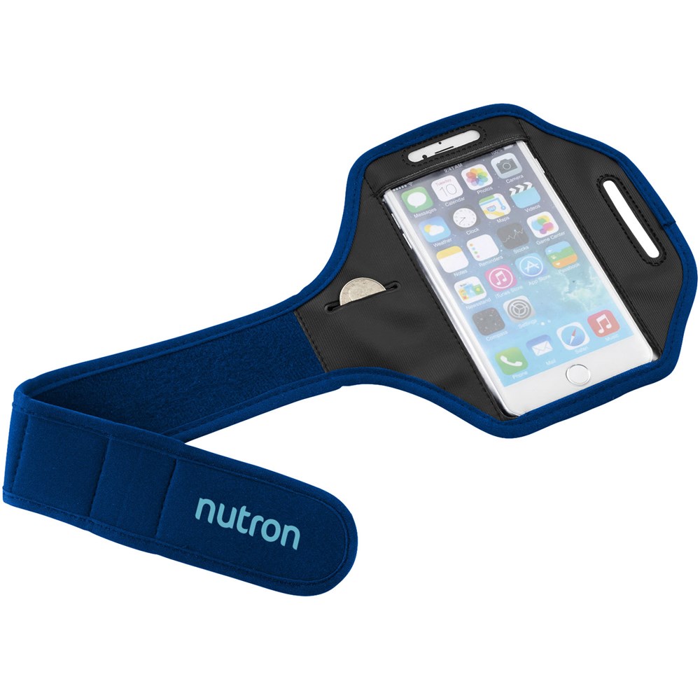 Verstelbare armband met klittenbandsluiting en PVC flap die de smartphone beschermt. Ook geschikt voor grotere smartphones als de iPhone 6(S)-Plus en Samsung S6. Met extra vakje voor sleutels of kleingeld.