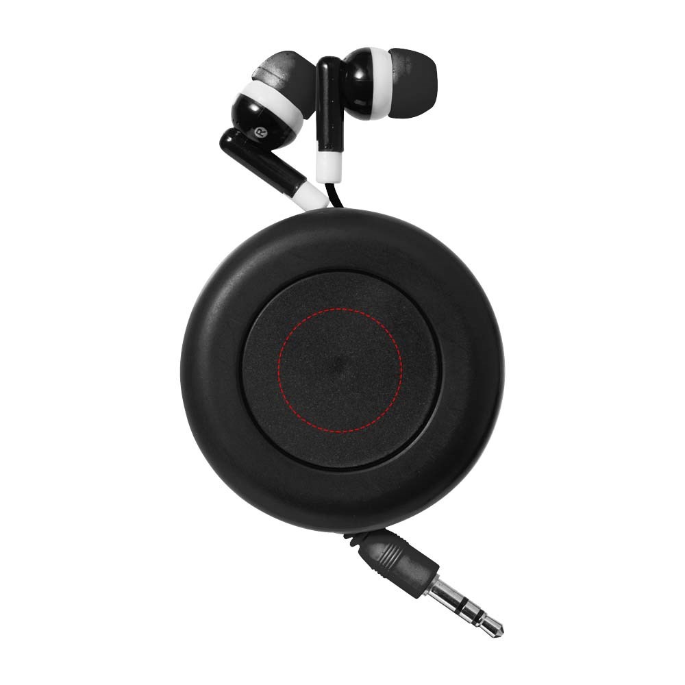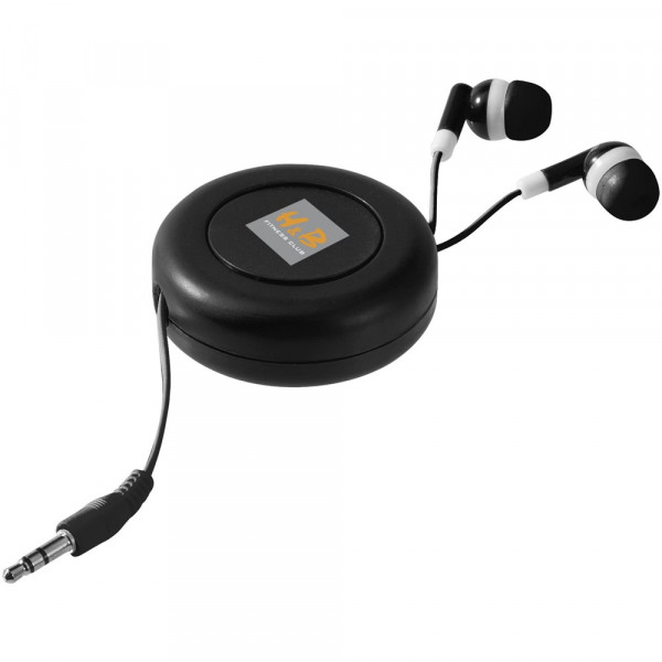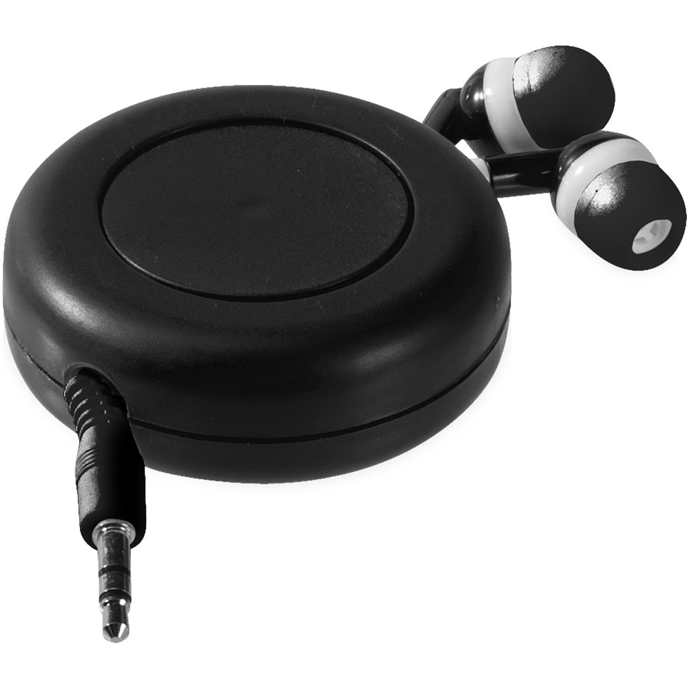 Oortelefoon met oprolsnoer, geschikt voor alle audioapparaten, tablets en muziekspelers met een 3,5 mm audio-ingang.
