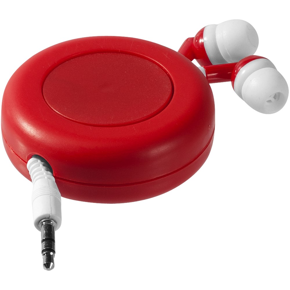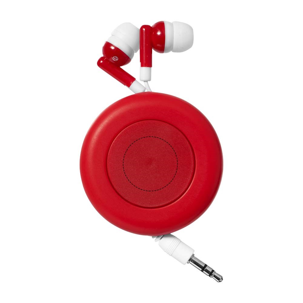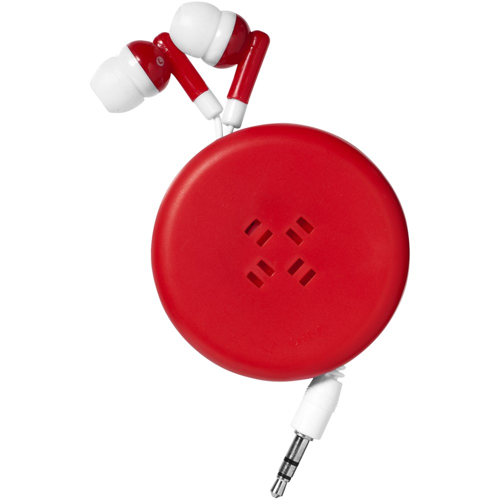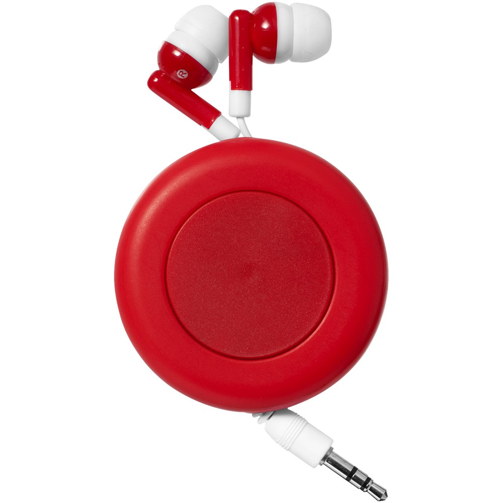 Oortelefoon met oprolsnoer, geschikt voor alle audioapparaten, tablets en muziekspelers met een 3,5 mm audio-ingang.