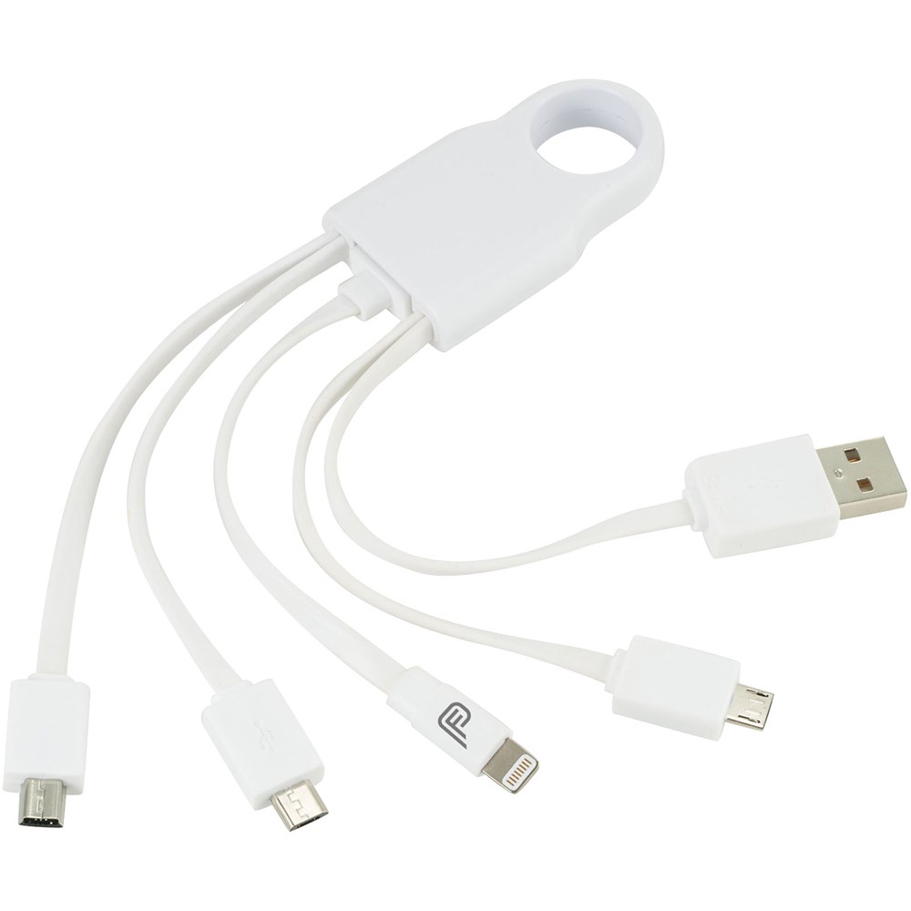 Deze USB oplaadkabel heeft 5 aansluitingen, USB-adapter, twee Micro USB-adapters, Mini USB-adapter en MFi gecertificeerd Apple® Lightning™ adapter. Trek de kabel van de MFi uit de body en sluit de USB connector aan een apparaat of laptop en de MFi connector aan een Apple®-apparaat met een MFi poort om het opladen te starten of het proces van de overdracht van de gegevens. Slechts één Micro USB-adapter en de MFi Lightning™-adapter ondersteunt gegevensoverdracht.