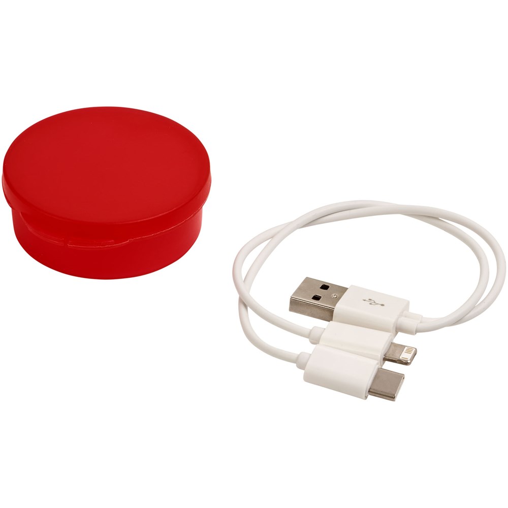 De Versa 3-in-1 oplaadkabel is verpakt in een handige, ronde cassette. Het multi-USB snoer is voorzien van een USB Type C aansluiting en een 2-in-1 dubbelcompatibele stekker voor zowel Apple® iOS als Android apparatuur.