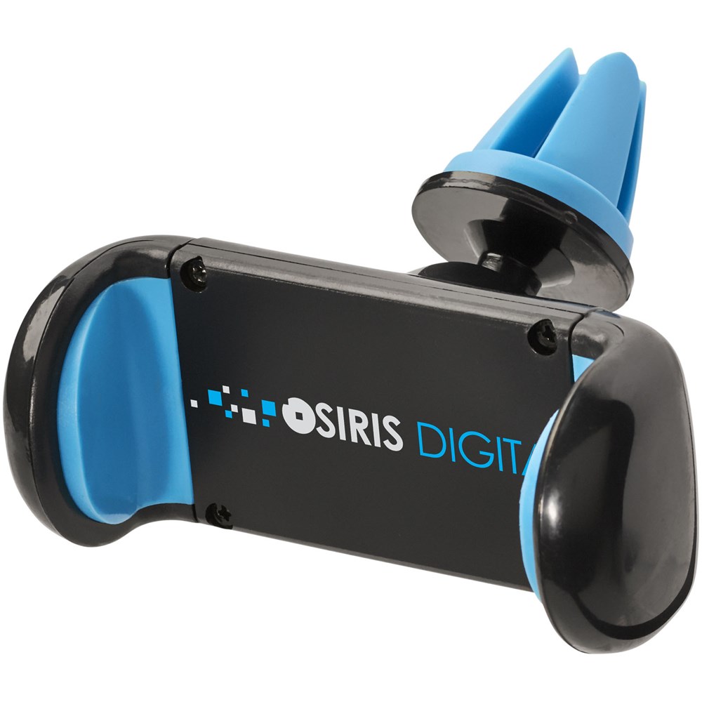 Telefoonhouder die in het ventilatierooster in het dashboard van een auto past en een mobiele telefoon in een handige en veilige positie houdt. Compatibel met alle telefoons. Hij kan 360 graden worden gedraaid en aan beide kanten worden geopend.