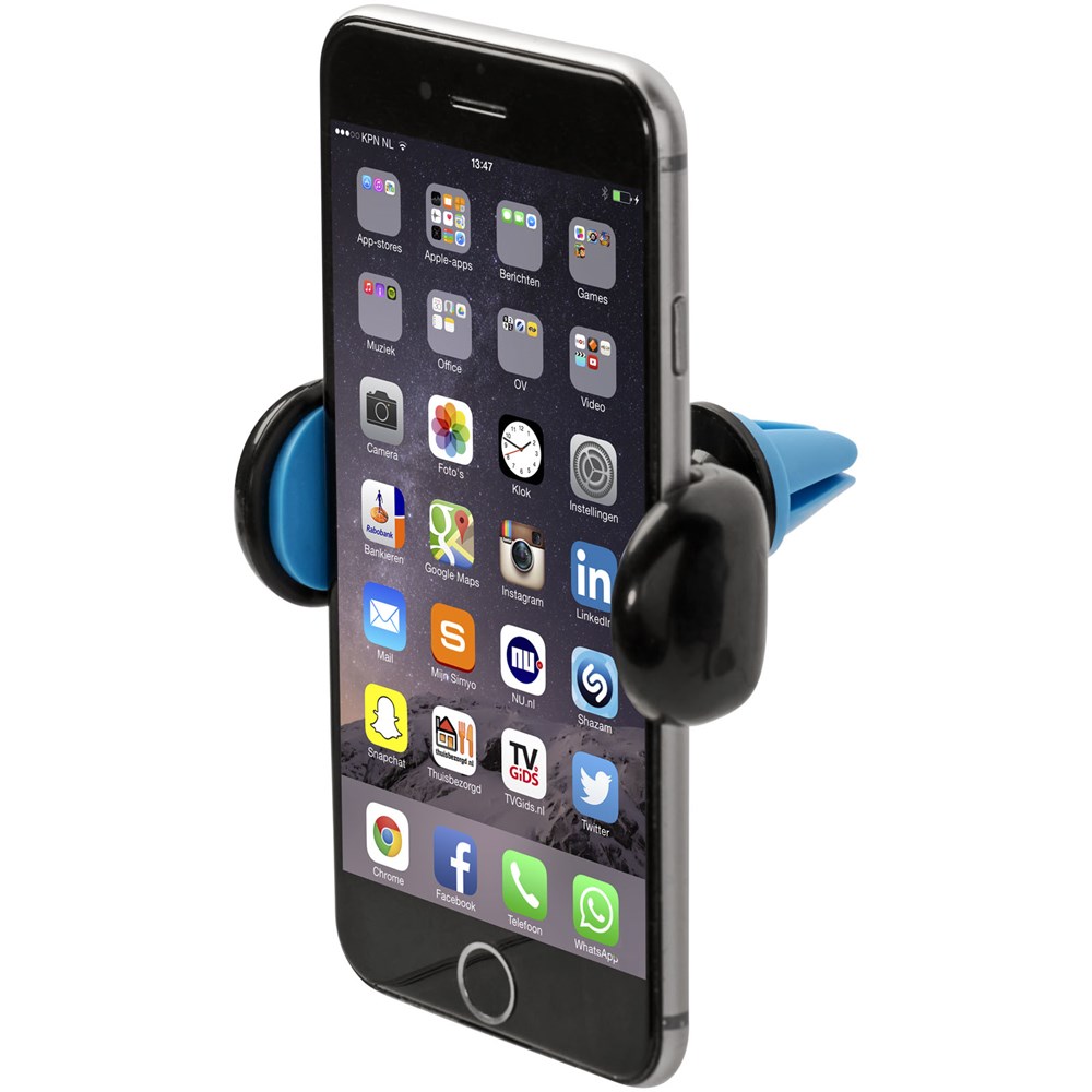 Telefoonhouder die in het ventilatierooster in het dashboard van een auto past en een mobiele...meer