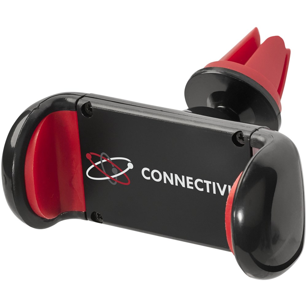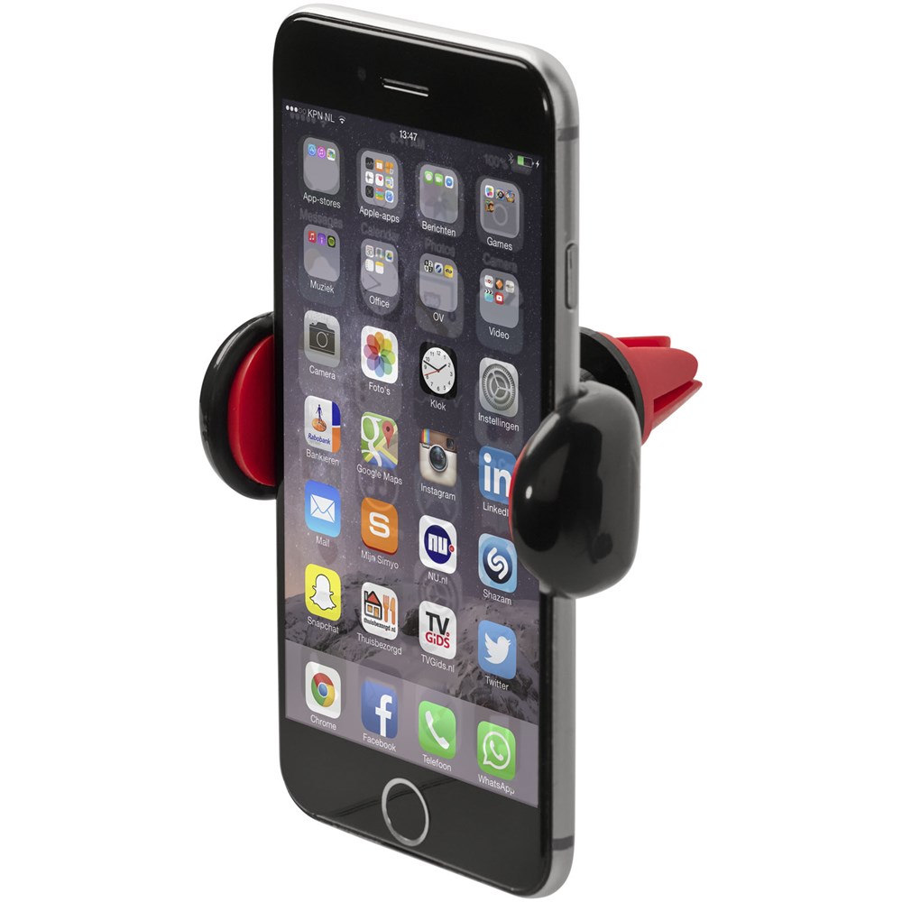 Telefoonhouder die in het ventilatierooster in het dashboard van een auto past en een mobiele telefoon in een handige en veilige positie houdt. Compatibel met alle telefoons. Hij kan 360 graden worden gedraaid en aan beide kanten worden geopend.