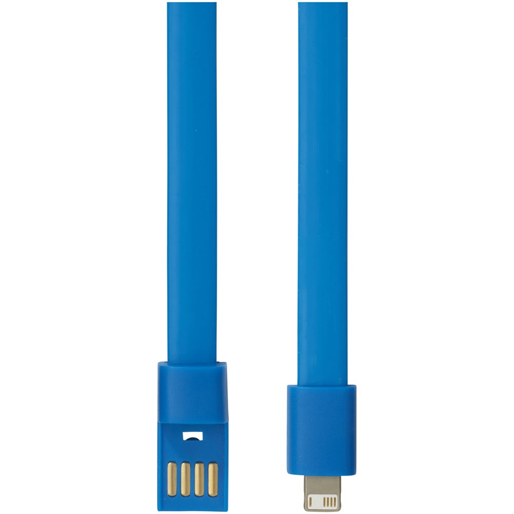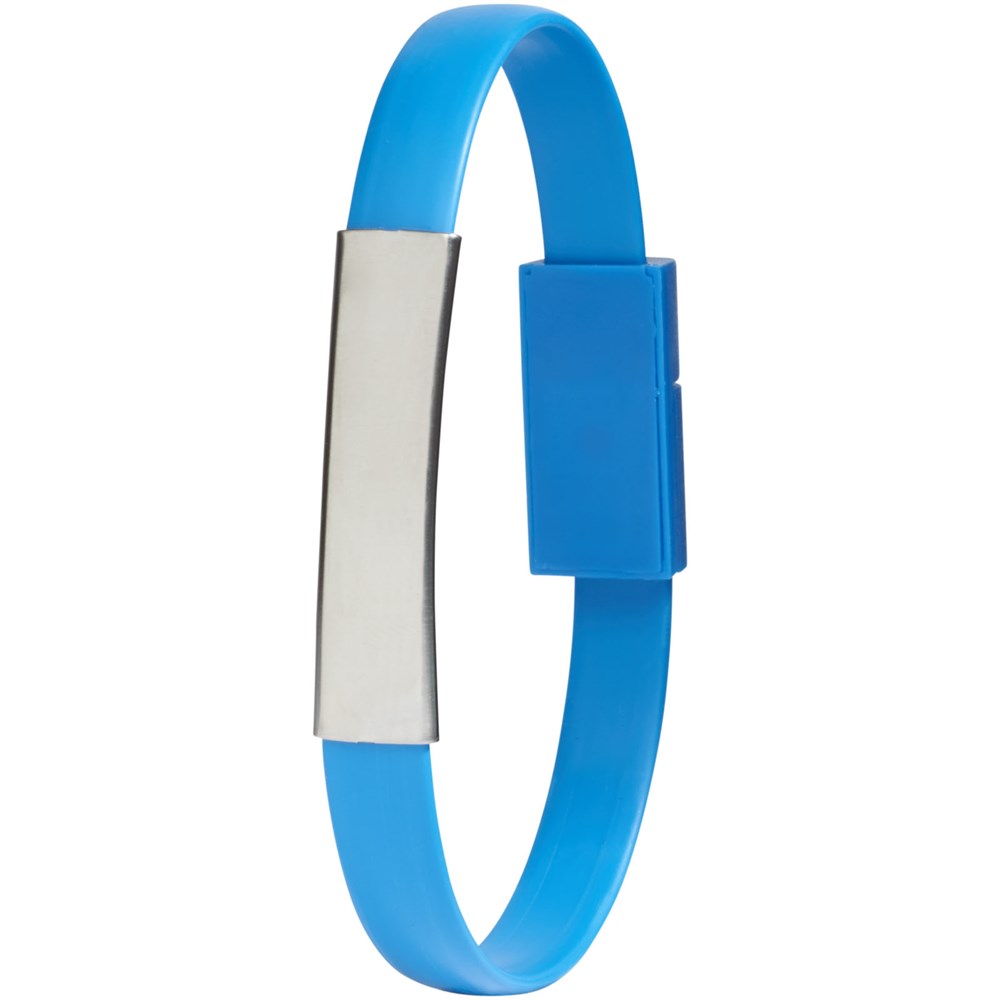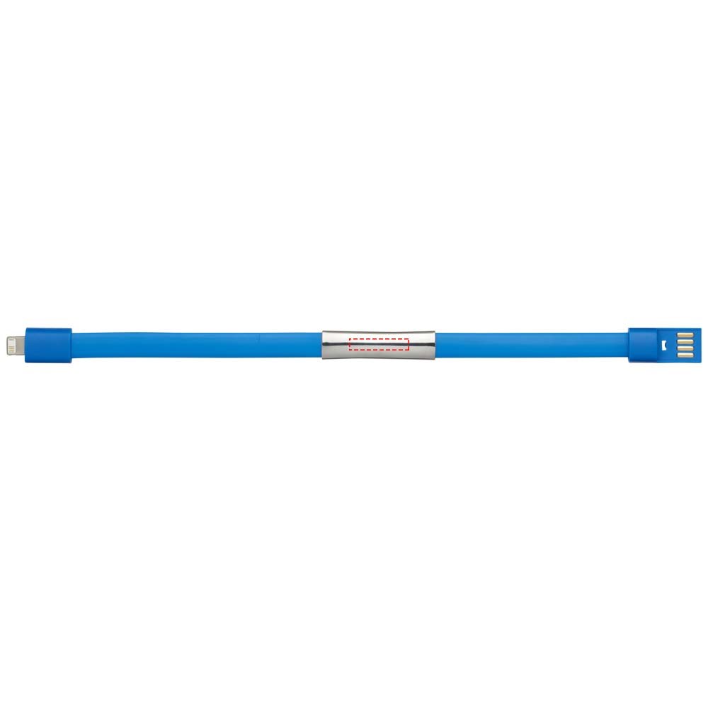 Deze 2-in-1 oplaadkabel met USB type A en een 2-in-1 compatibele stekker voor zowel iOS- en Android-apparaten. De twee stekkers kunnen aan elkaar worden bevestigd om ze om te vormen tot armband. De plaat biedt ruimte voor logo's. Alleen voor opladen.