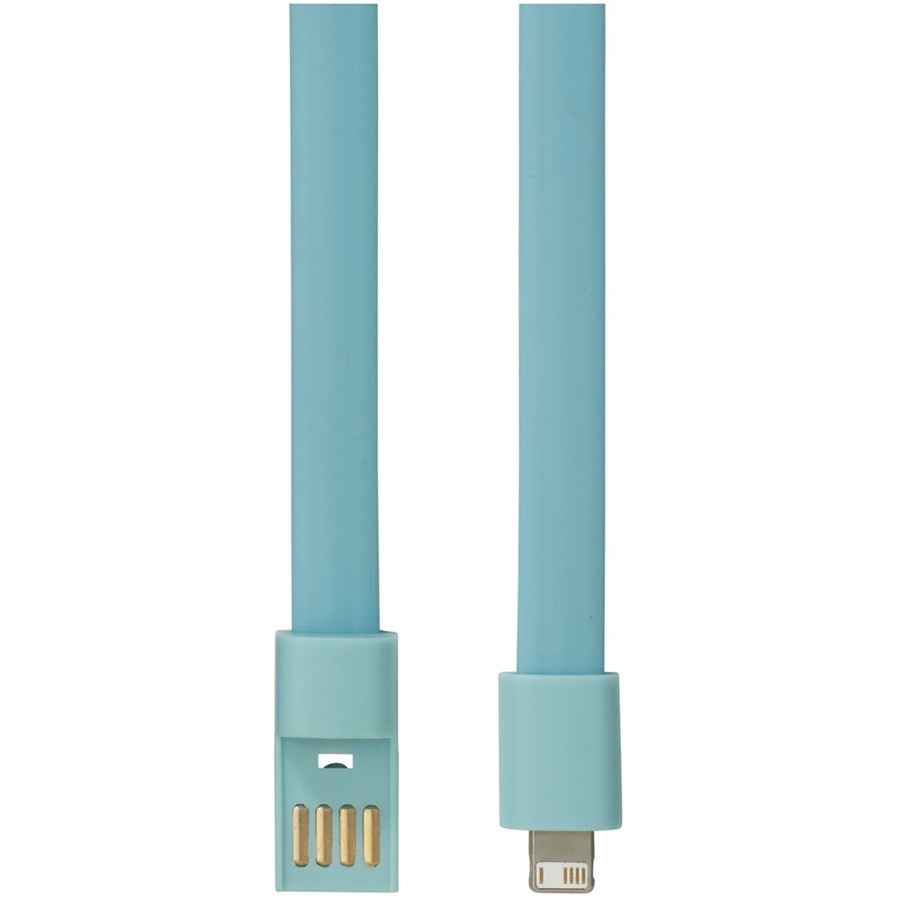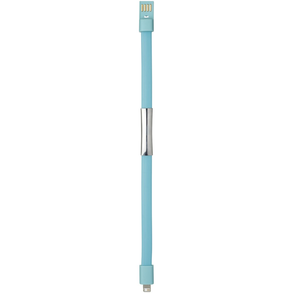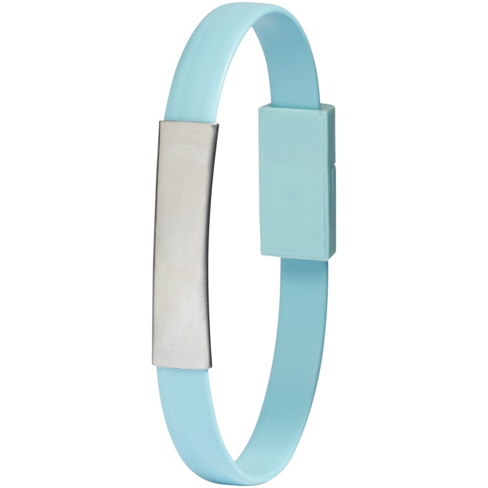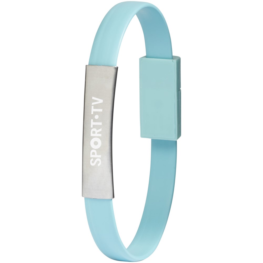 Deze 2-in-1 oplaadkabel met USB type A en een 2-in-1 compatibele stekker voor zowel iOS- en Android-apparaten. De twee stekkers kunnen aan elkaar worden bevestigd om ze om te vormen tot armband. De plaat biedt ruimte voor logo's. Alleen voor opladen.
