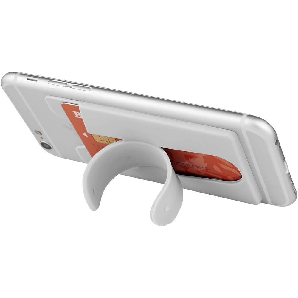 De Silicone Phone Wallet met standaard is een zachte beschermende siliconen portemonnee met tape die eenvoudig aan de achterkant van je telefoon kan worden bevestigd om 2-3 creditcards en / of ID-kaarten te bewaren. Het kan ook worden gebruikt als een telefoon standaard of als oordopjes wrap. Inclusief oordopjes.