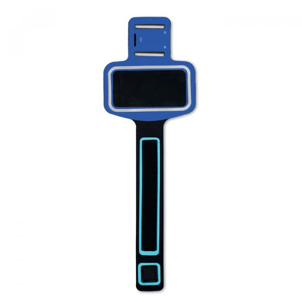 Verstelbare telefoon armband van neonprene met transparante voorzijde van PVC en reflecterende details.
