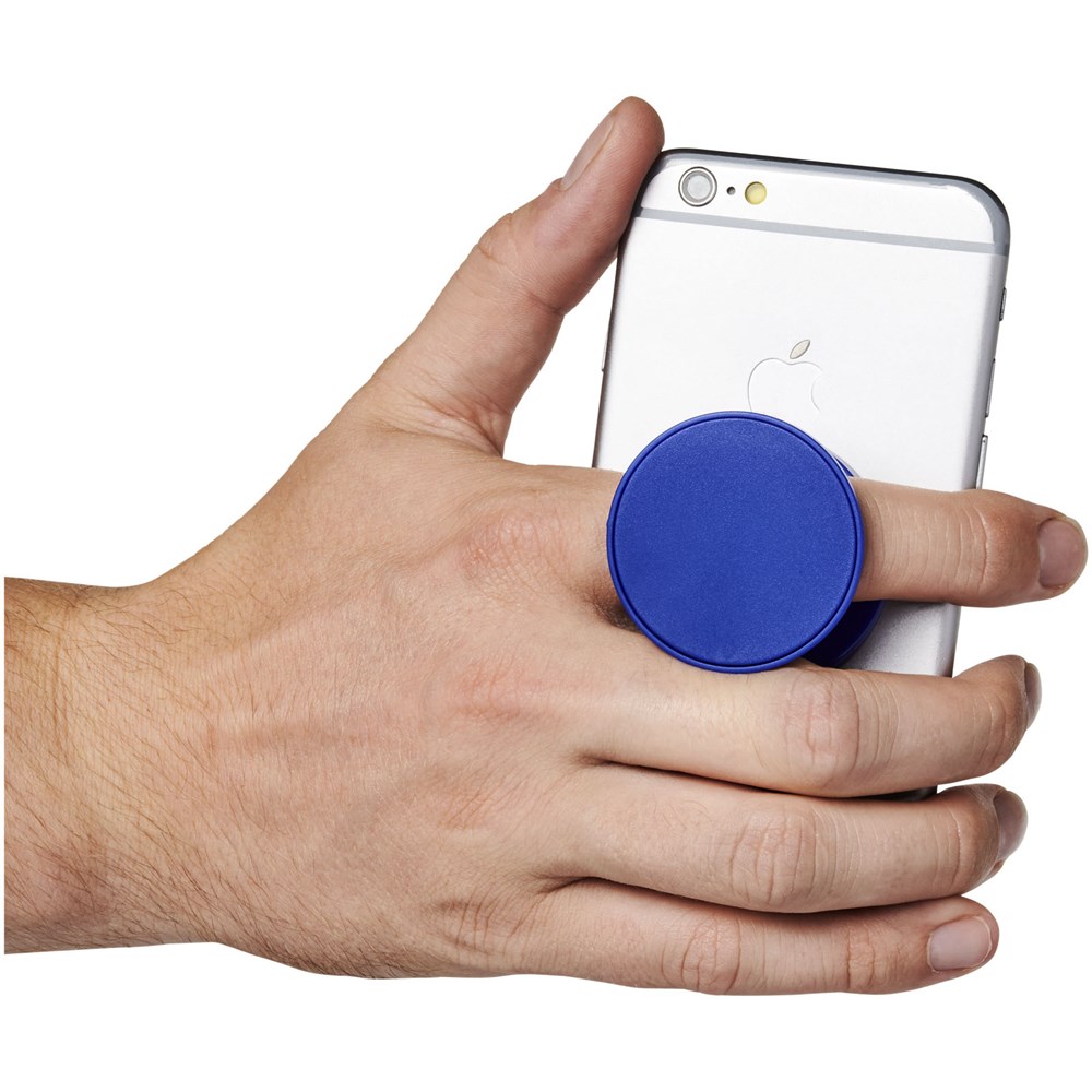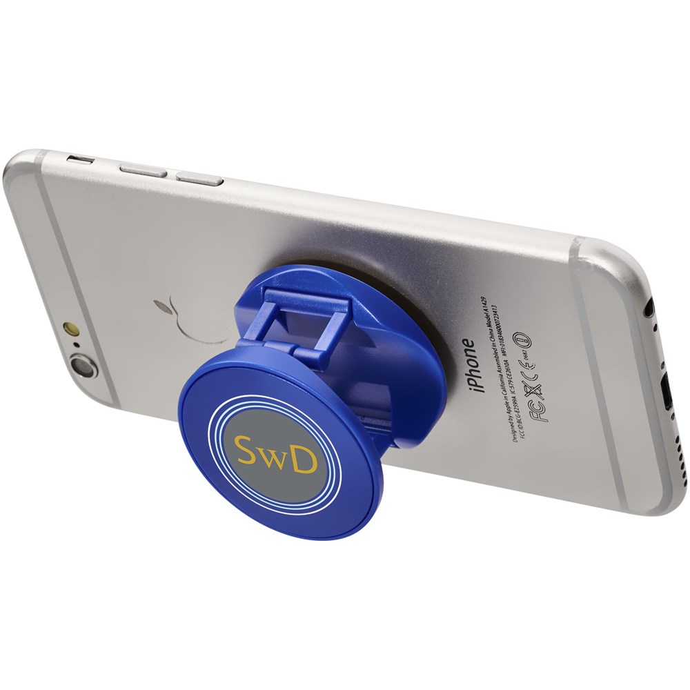 Dit item kan worden gebruikt als telefoonstandaard of om een smartphone veilig vast te houden. Werkt geweldig voor het kijken van films op een smartphone of voor het nemen van selfies. Zelfklevende achterkant plakt stevig op de achterkant van een smartphone.