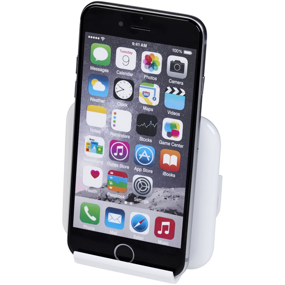 De Catena telefoonstandaard met draadloze oplader zorgt ervoor dat uw smartphone niet alleen een veilig plaatsje heeft, maar ook nog eens wordt opgeladen. Zet uw telefoon in de standaard en het opladen begint automatisch.
