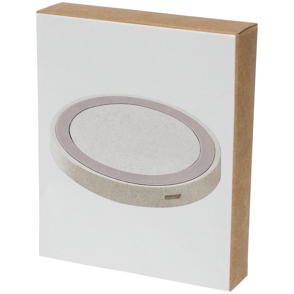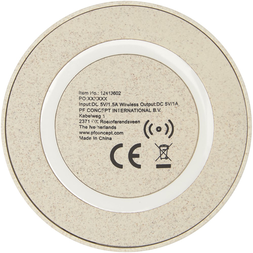 5W draadloos oplaadstation gemaakt van tarwestro gemengd plastic materiaal, waardoor er minder plastic nodig is. Om een apparaat zonder draadloze technologie op te laden is een externe draadloze laadontvanger of ontvangerbehuizing vereist.Verpakt in een geschenkverpakking en geleverd met een gebruiksaanwijzing (beide gemaakt van duurzaam materiaal). Micro-USB-oplaadkabel inbegrepen.