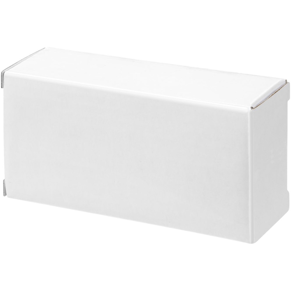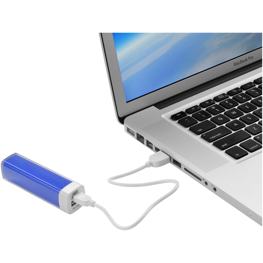 Deze powerbank heeft een capaciteit van 2200 mAh en levert voldoende energie voor het opladen van audioapparaten. De oplaadtijd van de powerbank is 2 uur. Met USB-kabel en indicatie van de laadstatus – rood bij opladen, uit wanneer opgeladen en blauw indien volledig leeg. Geleverd in een witte kartonnen geschenkverpakking.
