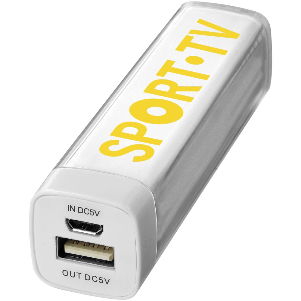 Deze powerbank heeft een capaciteit van 2200 mAh en levert voldoende energie voor het opladen van audioapparaten. De oplaadtijd van de powerbank is 2 uur. Met USB-kabel en indicatie van de laadstatus – rood bij opladen, uit wanneer opgeladen en blauw indien volledig leeg. Geleverd in een witte kartonnen geschenkverpakking.