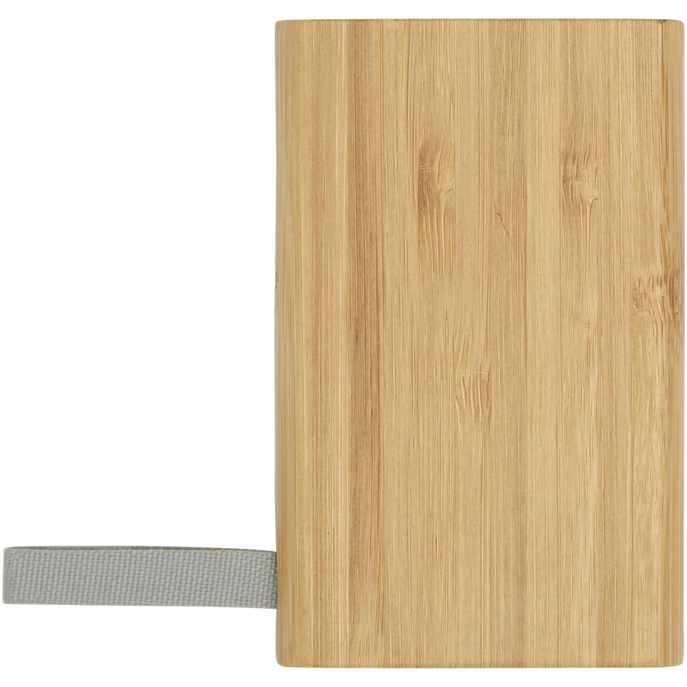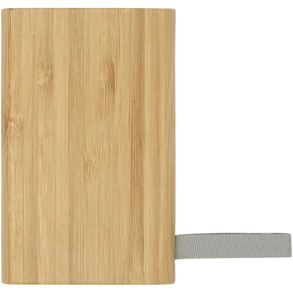 Bamboe powerbank die 5000 mAh back-upstroom biedt voor mobiele telefoons of andere digitale apparaten. Met ledlampjes en een webbing gemaakt van RPET-materiaal. Micro USB-oplaadkabel inbegrepen. Verpakt in een geschenkverpakking en geleverd met een gebruiksaanwijzing (beide gemaakt van duurzaam materiaal). Aangezien bamboe een natuurlijk product is, kan ieder item enigszins variëren in kleur en grootte, dat het uiteindelijke resultaat van de decoratie kan beïnvloeden.