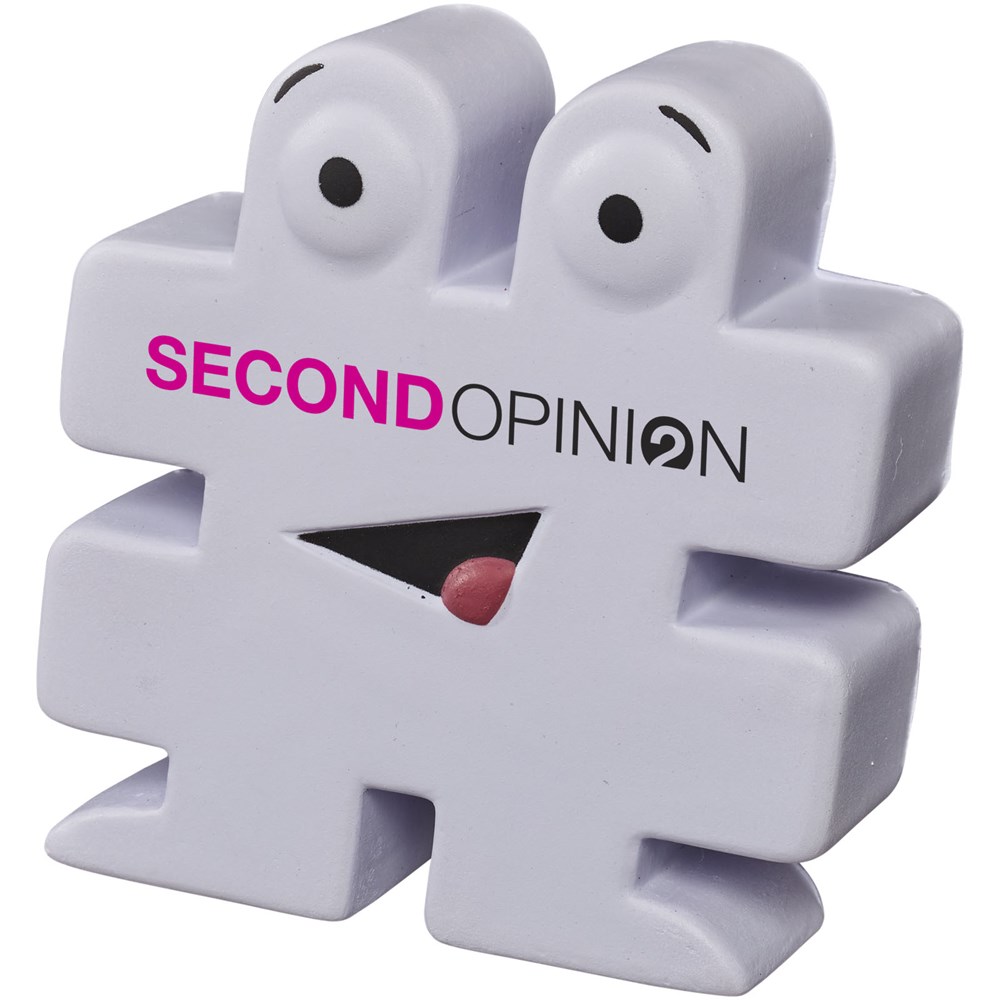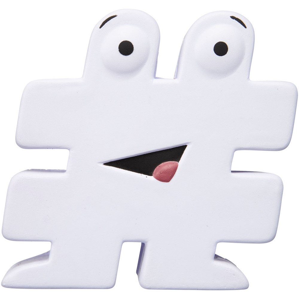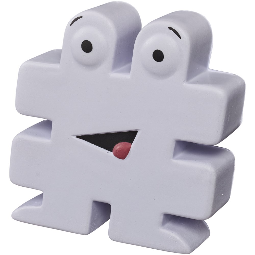 Hash tag stress reliever kan ook gebruikt worden om een koord bij elkaar te houden. Bij anti-stress artikelen kunnen kleine variaties voorkomen in dichtheid, kleur, afmetingen en gewicht die effect kunnen hebben op precisie en uniformiteit van de bedrukking, die ook kan breken. Geen half-tinten. PU foam.