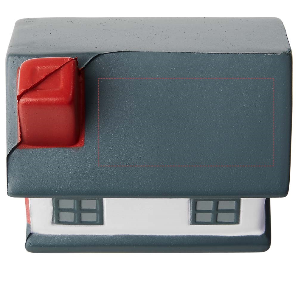Anti stress item in de vorm van een huis. Het dak heeft een groot oppervlakte voor het plaatsen van je logo.